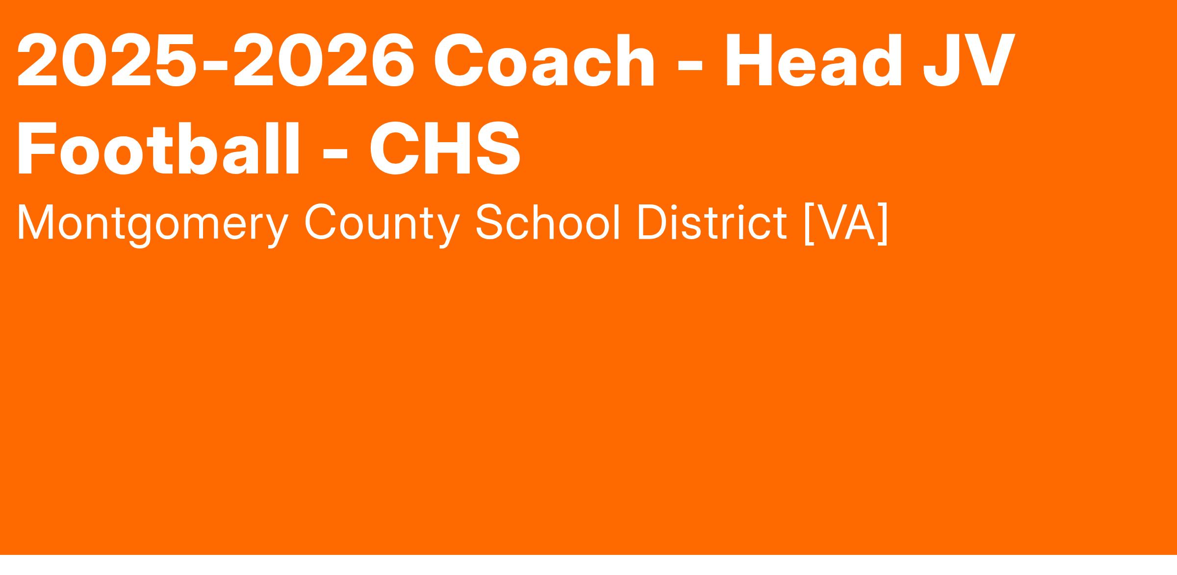 Montgomery County Public Schools has an immediate opening and is accepting applications for a Football Coach – Head Junior Varsity position that is available for the 2025-2026 school year at Christiansburg High School.