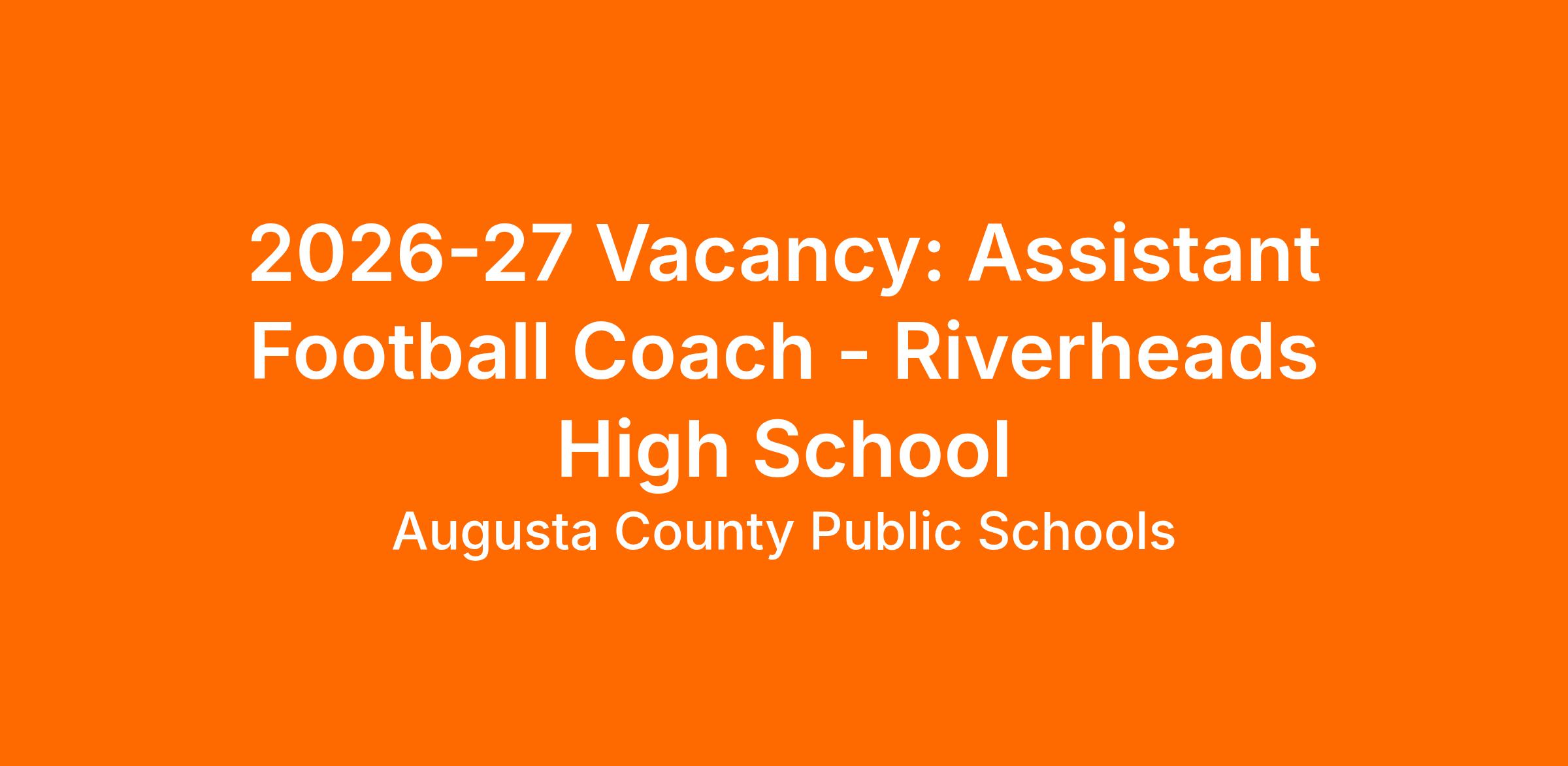 Riverheads High School is seeking an Assistant Football Coach for the 2026-27 fall season.