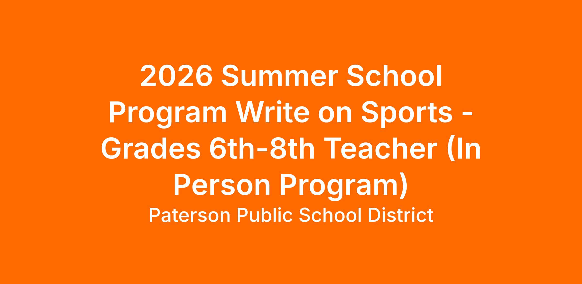 Paterson Public Schools is an Equal Opportunity and Affirmative Action Employer committed to building a diverse and inclusive workforce that reflects the community we serve. All qualified applicants will receive consideration for employment without regard to any legally protected characteristic, in accordance with federal and New Jersey law.