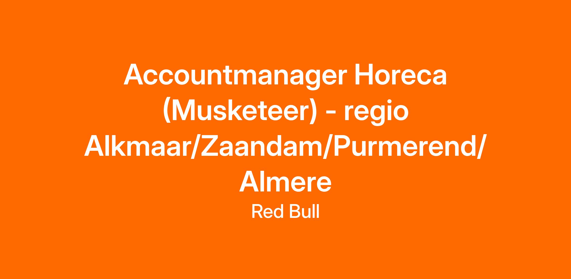 Binnen Red Bull zijn we op zoek naar een nieuwe Musketeer: een accountmanager 2.0 voor de top van de Nederlandse horeca. Iemand die écht met de klant meedenkt, creatief is en graag een band opbouwt met klanten. Als Musketeer zorg je voor beschikbaarheid en zichtbaarheid van Red Bull doormiddel van onder andere Point-of-Sale materiaal. Je schakelt snel! En de combinatie van relatiebeheer, sales en marketing zorgt voor een continue volumegroei.