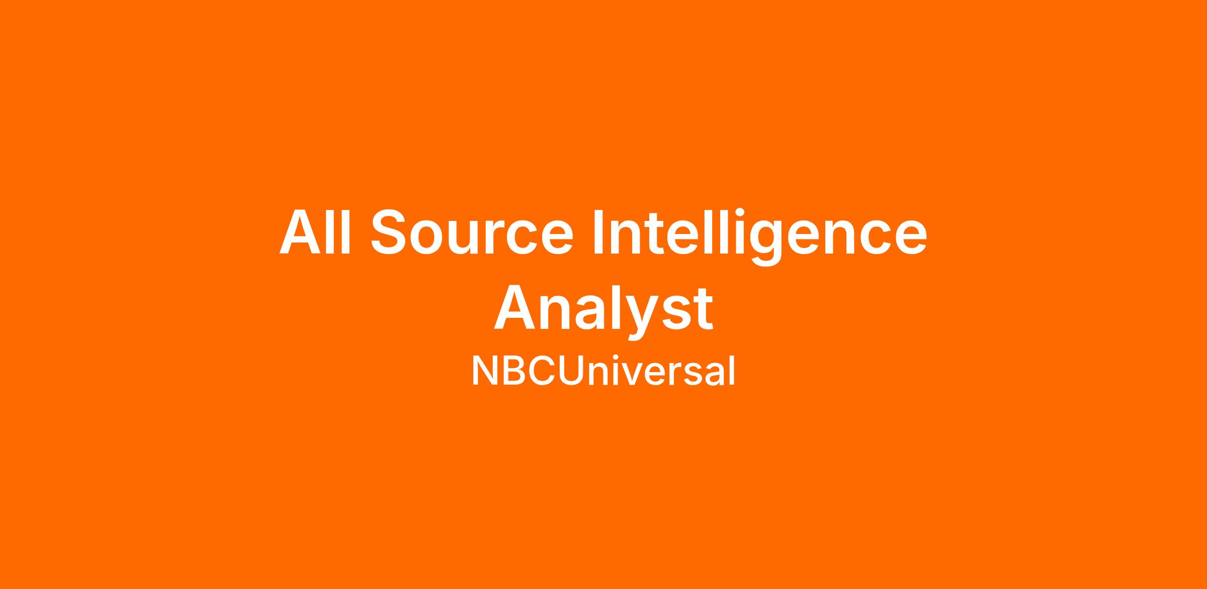 Conducts comprehensive all-source collection, analysis, and production of tactical and strategic risk assessments of foreign and domestic threats against NBCUniversal assets.