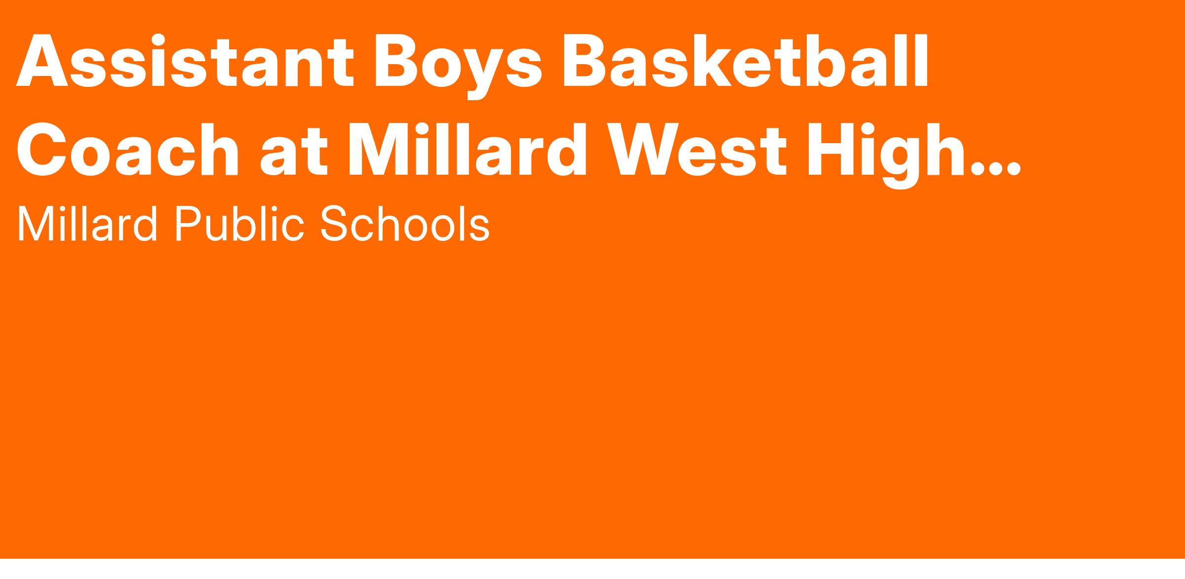 Millard West High School is seeking a dedicated and enthusiastic Varsity/JV Assistant Basketball Coach to join our athletic program. The successful candidate will work closely with the Head Coach to support the development of our varsity basketball team, fostering a culture of teamwork, discipline, and excellence both on and off the court. This position is ideal for an individual passionate about coaching young athletes and contributing to a competitive high school basketball program.