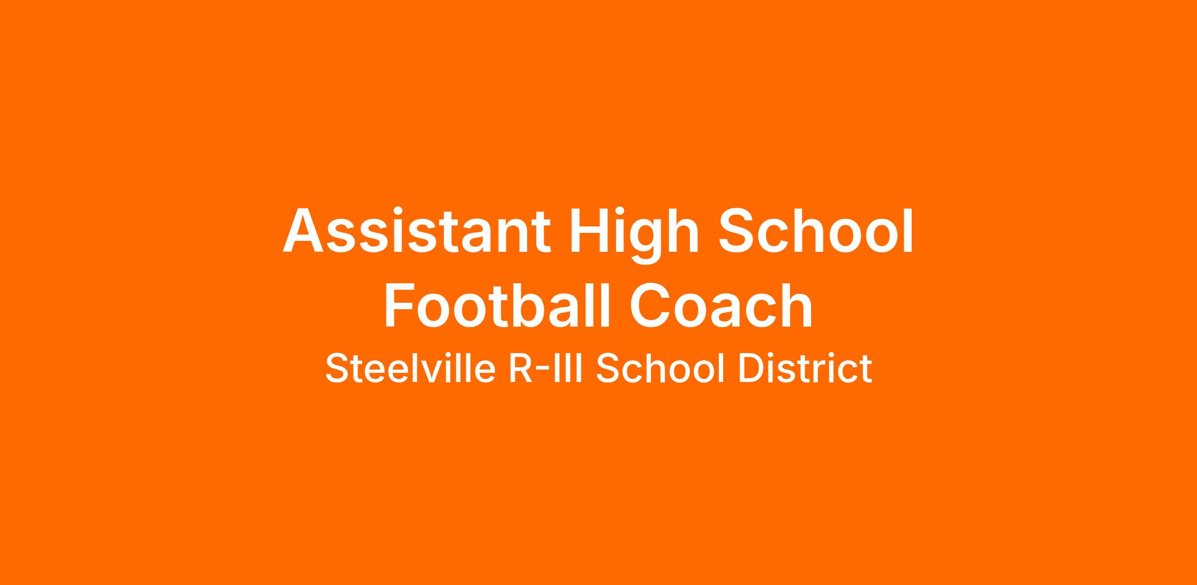 The Steelville R-3 school districting is accepting applications for the position of Assistant Football Coach for the 2026-27 school year.  Interested applicants should contact Athletic Director, Ryan Weber at rweber@steelville.k12.mo.us or by phone at 573-775-2144.  Various teaching opportunities are available within the district for 2026-27.  Steelville R-3 will operate on a four day school week starting in 2026-27.