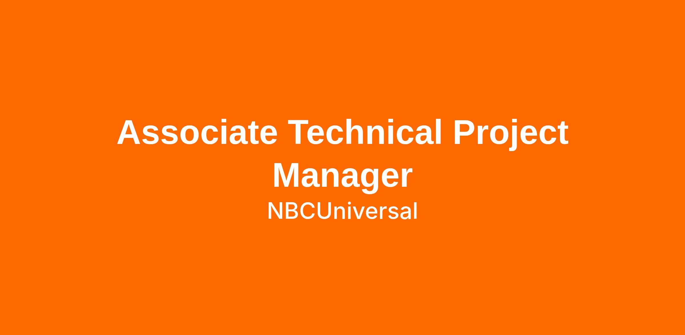 The TVEverywhere team is looking for an exceptional Associate Technical Project Manager to join our high-performing team of program and project managers delivering world-class products for NBC Entertainment and Sports. The Associate Technical Project Manager’s primary responsibilities are leading a technical team to successful and seamless launches and continually improving processes to further the efficiency of backend and client teams. This role reports to the Sr Project Manager. Together, we will shape our culture, solve technical problems, and create extraordinary streaming experiences that captivate audiences worldwide.