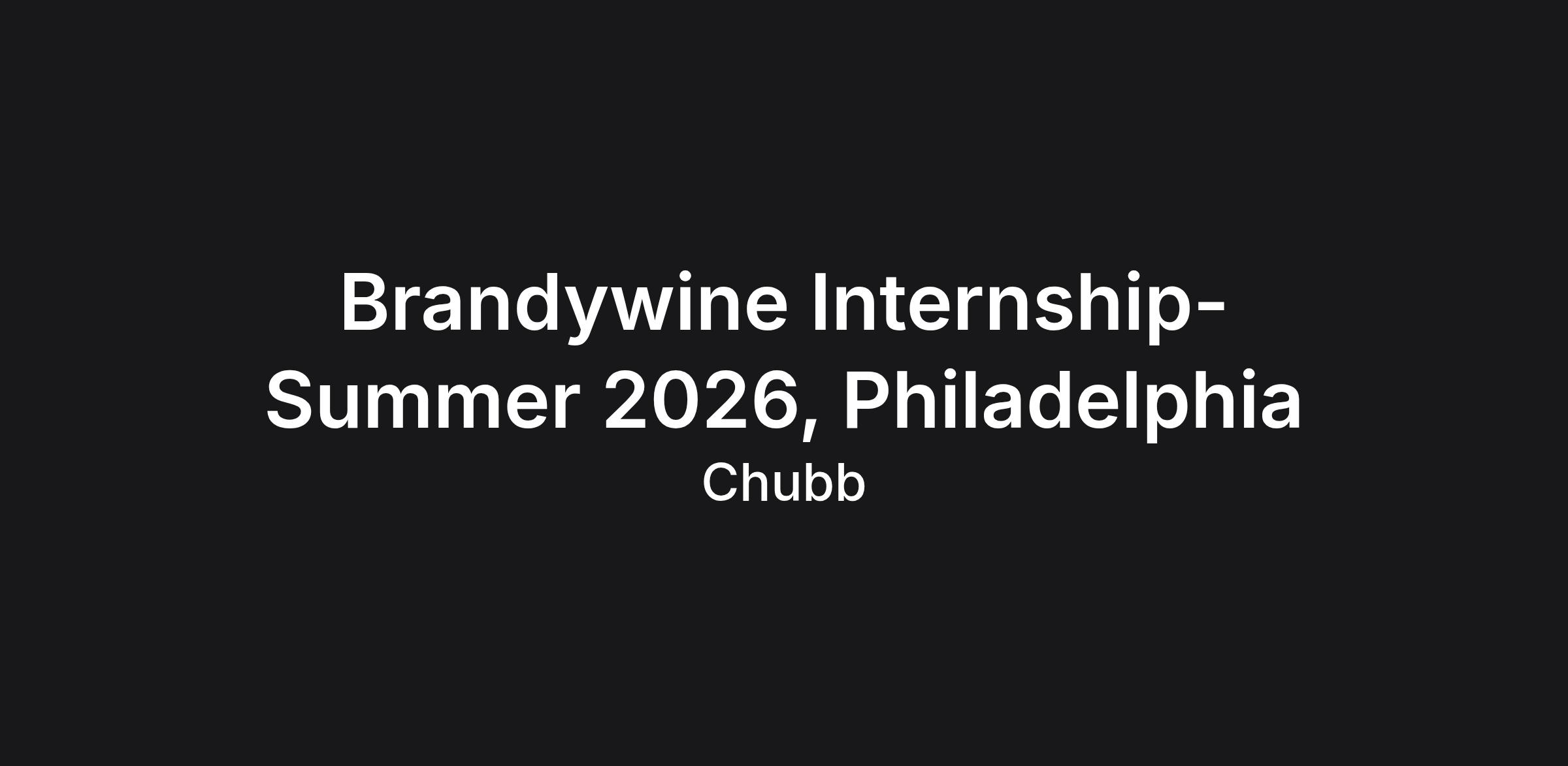 Our Internship Program is an excellent starting point for individuals seeking to learn more about the insurance industry at one of the world's leading P&C insurance companies. Brandywine, a division of Chubb, manages most of the significant North American run-off liabilities, including major claims related to asbestos, environmental issues, long-term exposure, and other mass torts. The division operates its own Direct Claims, Reinsurance, Legal, Financial, Actuarial, Litigation Risk Analysis, and Operations teams, as well as three captive litigation offices specializing in coverage disputes. We are seeking multiple summer interns for our new Philadelphia office. Our program offers the opportunity to learn, grow, and build professional skills while being supported by our experienced team members. Successful participants in the program may have the opportunity to return to Chubb as a full-time employee or future intern, depending on their graduation date.