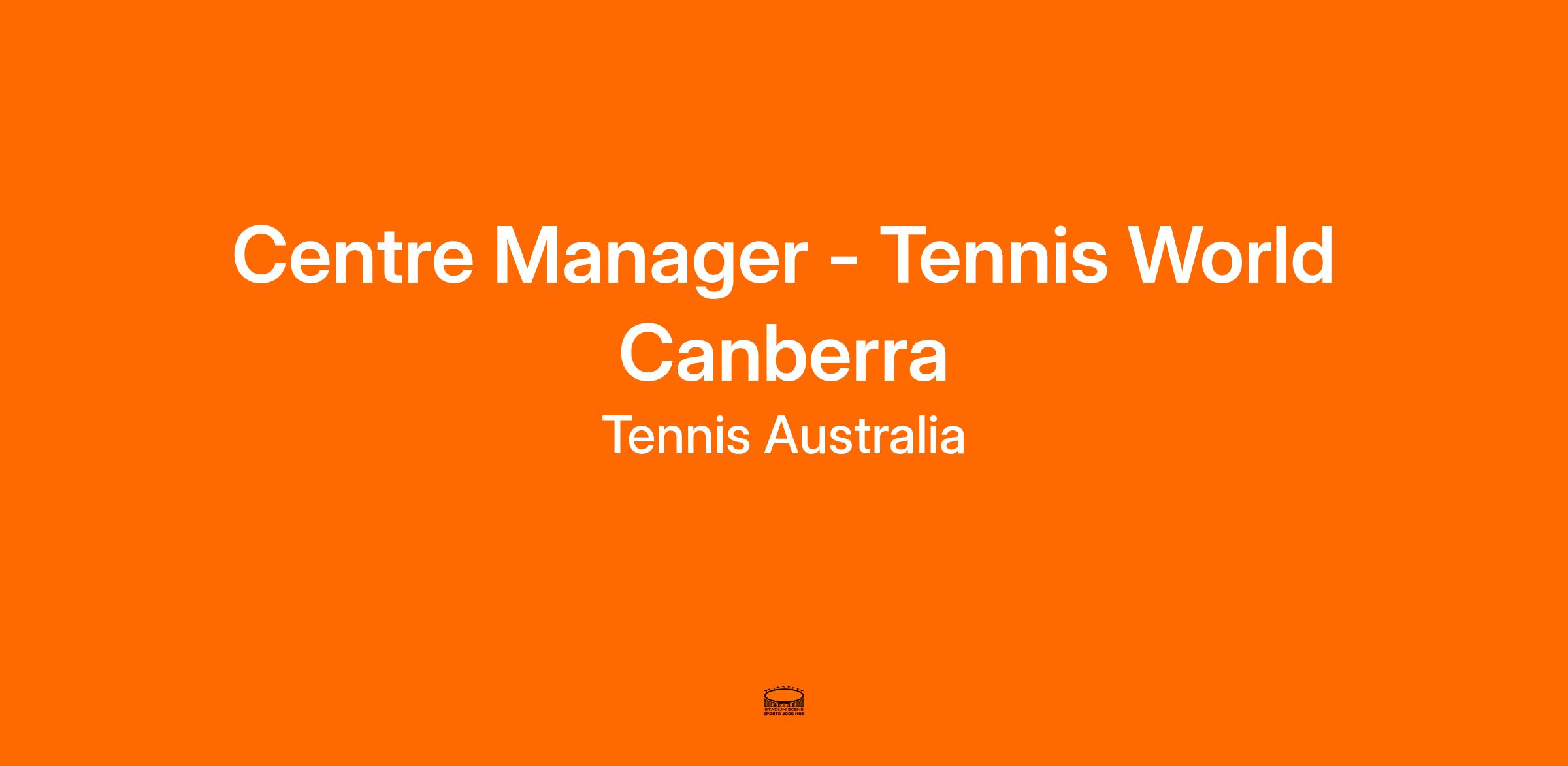 The Centre Manager, Tennis World Canberra is responsible for the effective and efficient management and operations of the Canberra Tennis facility. This role will oversee the Customer Service, Coaching and Programs team and ensure all aspects of operations are delivered in a friendly and effective manner. The Centre Manager role encompasses day to day oversight of customer service delivery, coaching delivery and enrolments, retail merchandise fulfilment, membership and programs administration, Tournaments and overall business performance. The role will also oversee venue operations, maintenance and repairs.