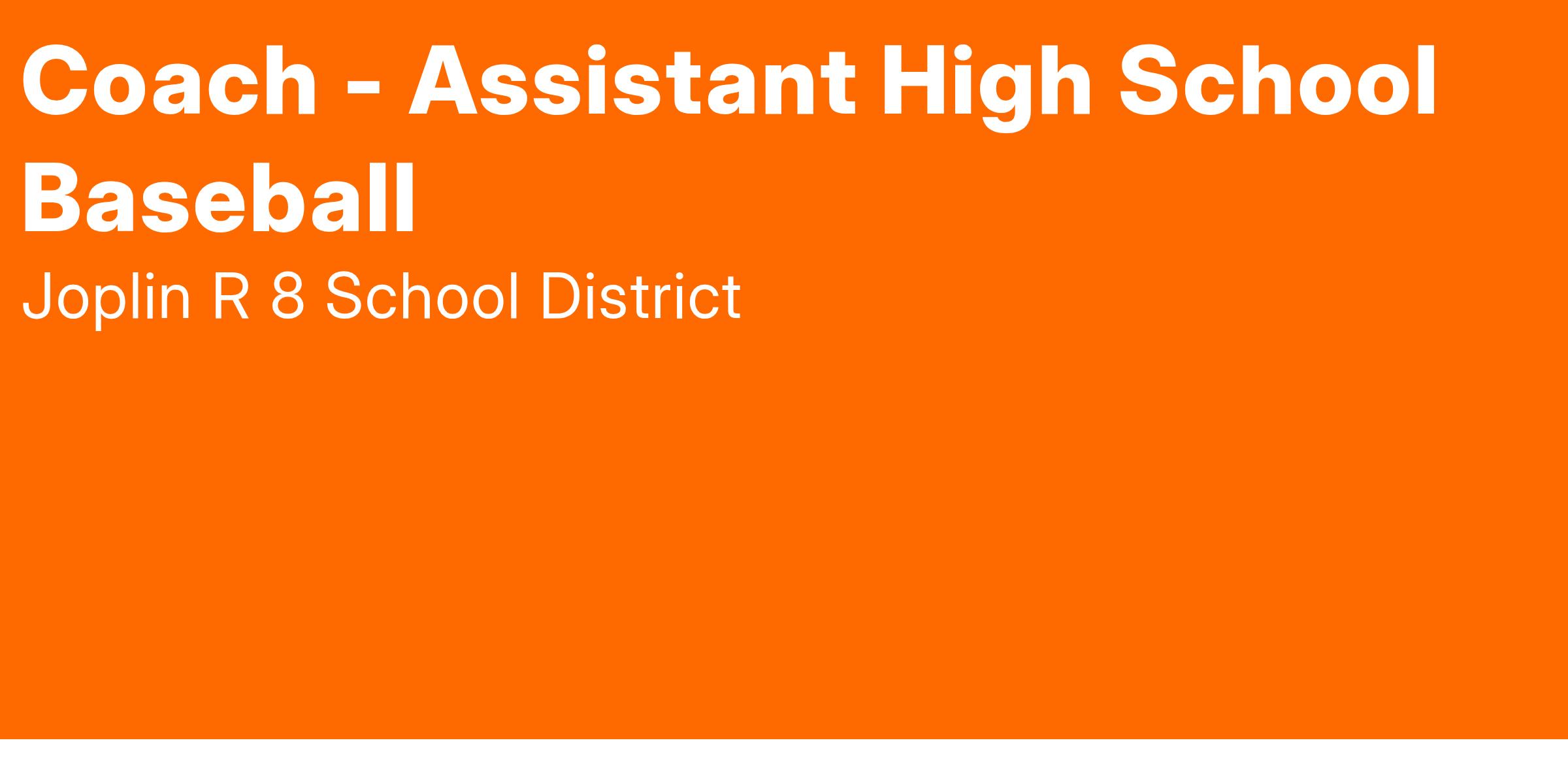 Joplin Schools is looking for an energetic individual that enjoys working with high school age students and has the ability to teach those students the skills needed to succeed in baseball.