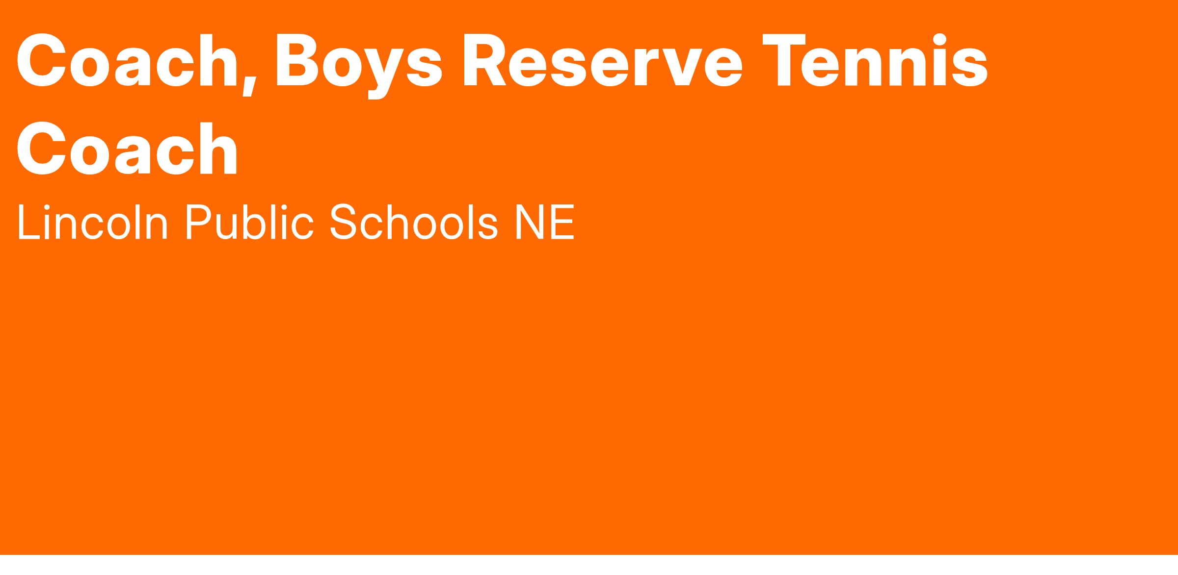 Lincoln Northwest High School is seeking a dynamic individual as an assistant boys tennis coach to provide support for athletes in the Lincoln Northwest Reserve Tennis program. Excellent communication and organizational skills are required as well as the desire and ability to develop positive relationships with student-participants, families, and the LPS community. Must have comprehensive knowledge and experience with the sport of tennis to help develop the school’s program.
