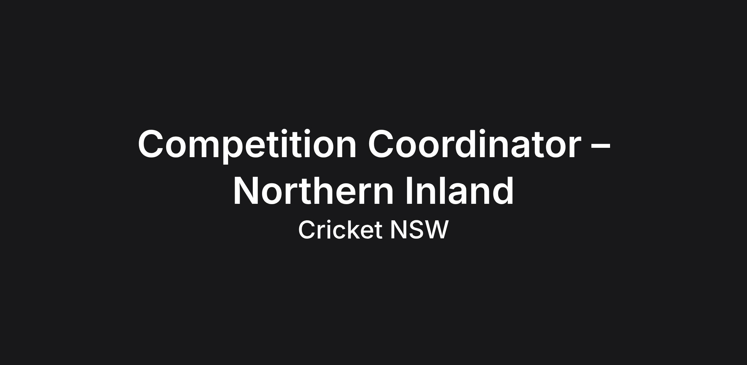 Competition Coordinator – Northern Inland