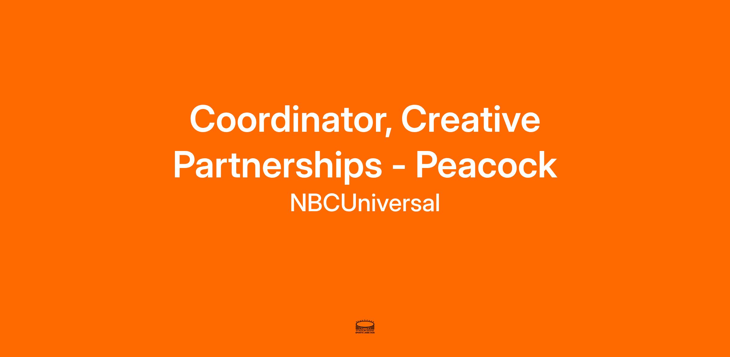 Peacock is recruiting a Creative Partnerships Coordinator. You will be tasked with helping our media partners soar by supporting on-platform partner activations and executing Peacock ad products, as well as supporting the development of unique partnership opportunities with Peacock’s exclusive content.