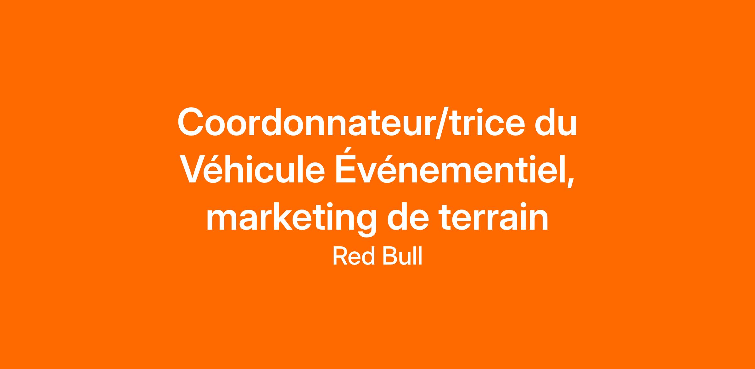 Le Event Vehicle Coordinator (EVC) agit comme ambassadeur(rice) de la marque Red Bull et comme visage de la marque. Cette personne est ultimement responsable du Véhicule Événementiel Red Bull (EV), un actif marketing clé au cœur de nos initiatives de marketing terrain et grassroots. Les responsabilités comprennent la planification et l’exécution de l’horaire du Véhicule Événementiel à travers les événements, le soutien aux ventes et les moments clés devant les consommateurs ainsi que le soutien à la programmation de contenu du Véhicule Événementiel en collaboration avec l’équipe des médias sociaux. Le ou la coordonnateur(trice) relèvera directement du ou de la Field Marketing Manager (FMM) et aura un lien fonctionnel avec le ou la National Event Manager (NEM), afin de donner vie à la vision et à la mission du Véhicule Événementiel. Tout au long de l’année, ce rôle visera à créer un programme fort qui surprend les consommateurs, en mettant le véhicule sur la route le plus souvent possible.