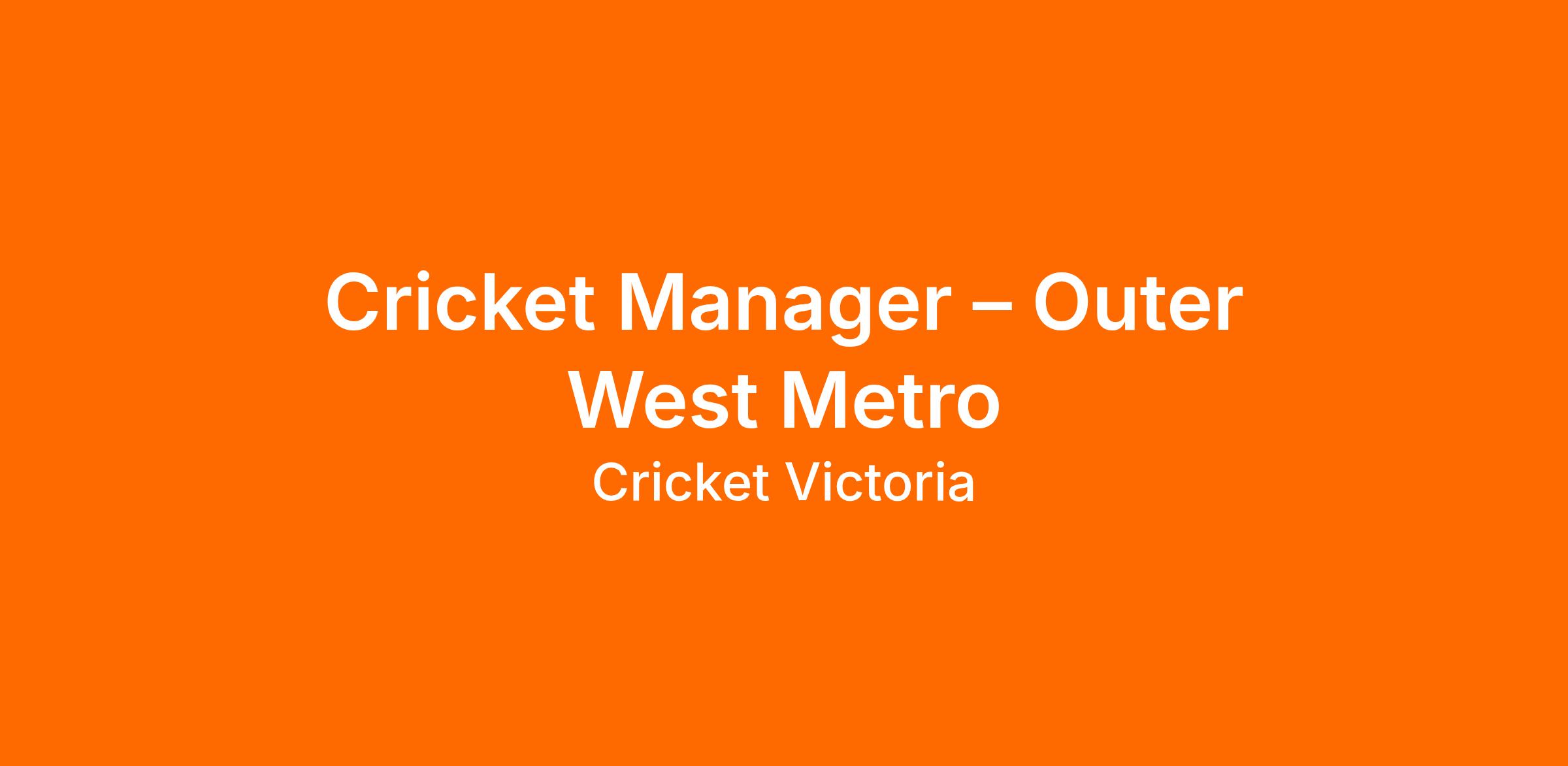 We are currently seeking to appoint a highly motivated and passionate individual to join our team as our Cricket Manager for the Outer West Metro region. This position will play a critical role in growing sustainable participation, maintaining the delivery of exceptional experiences and supporting the cricket community Associations, Clubs, and school programs in the west of Melbourne. The region covers the following local government areas: Wyndham & Melton City.