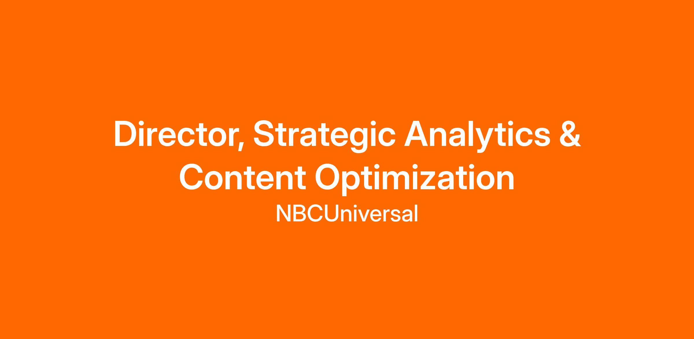 Reporting to the SVP of Strategic Analytics & Content Optimization, the Director will act as an analytical thought leader, supporting data-driven workstreams that shape strategy across a variety of project types including: maximizing cross-portfolio content value, identifying content optimization and emerging content opportunities, analyzing competitor streaming performance, windowing optimization, and supporting the development of executive presentations.