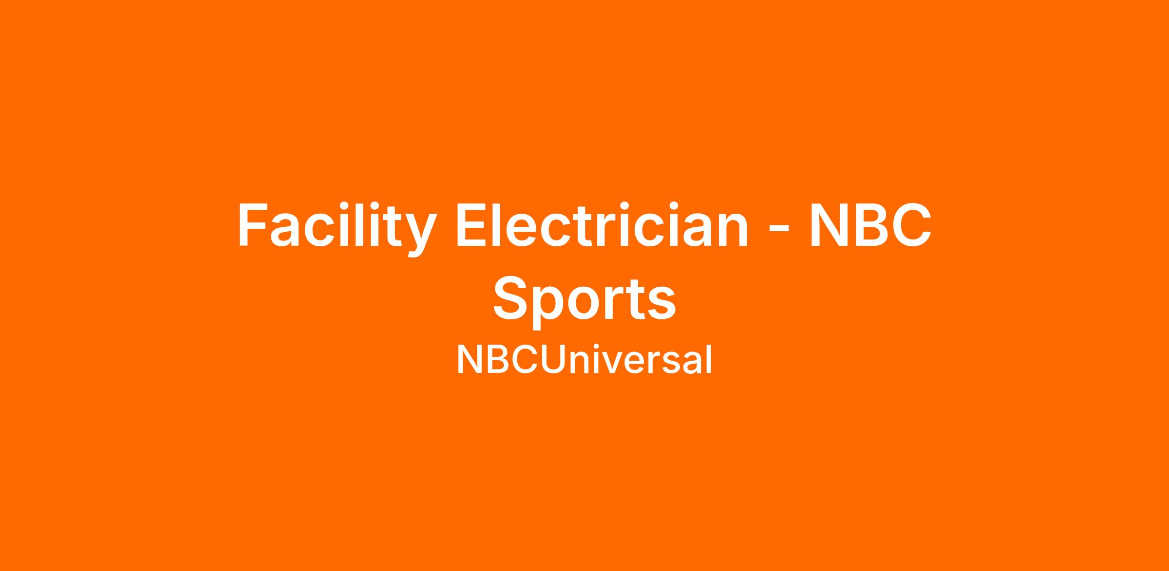 NBC Sports is seeking a highly skilled and electrical licensed Facility Electrician to join the Operations team at the Stamford, CT headquarters. This position is critical to maintaining the 24/7 reliability of our state-of-the-art broadcast and production facilities.