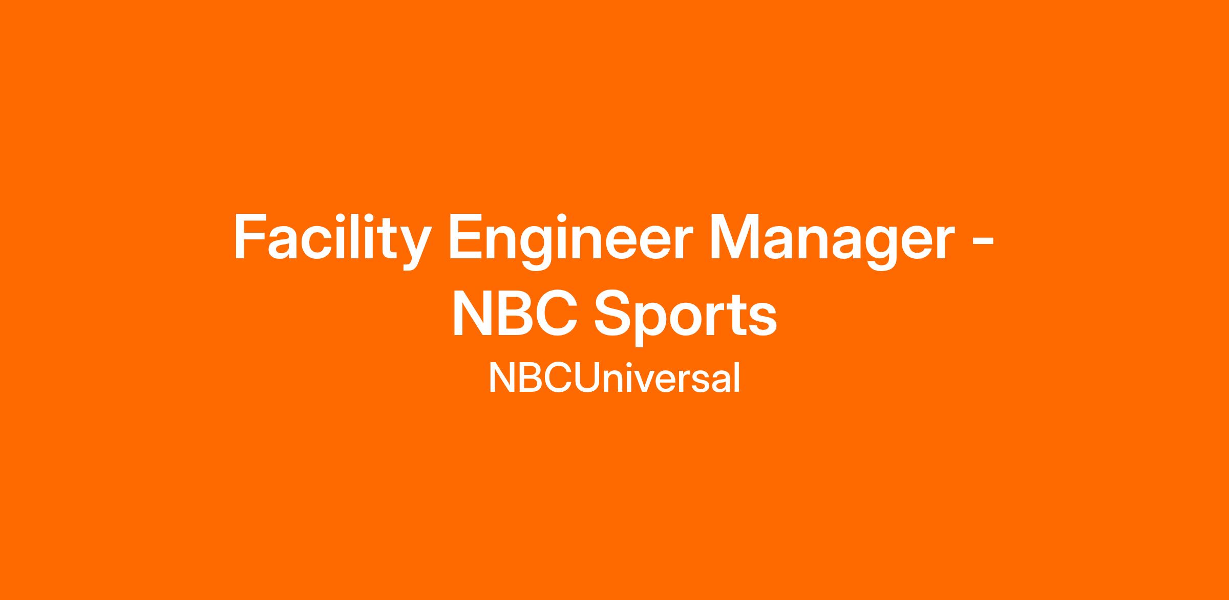 NBC Sports is looking for a Facility Engineer Manager to join the team located in Stamford, CT. This position will be responsible for overseeing and operating critical systems, managing engineering staff, EHS compliance, emergency preparedness, and maintenance management.