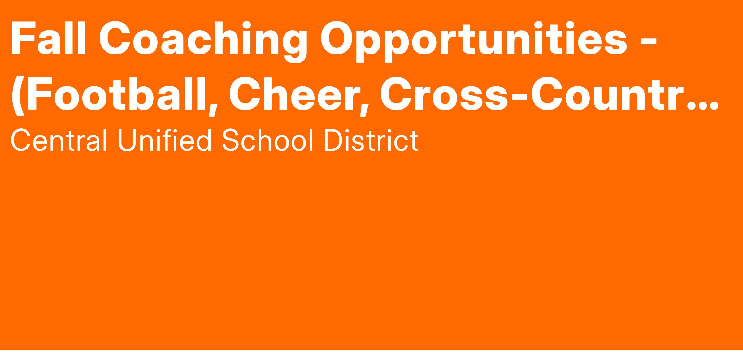 All Coaches will be required to create a Home Campus account for clearance tracking. Coaches will be required to attend the Central Unified School District Athletics Coaching Orientation. ALL training is required prior to applicant coaching. If you have already completed any of the listed trainings please attach your documents for review. If you have not, please submit an application and wait for more information during onboarding. “Coaching Experience is Preferred.”