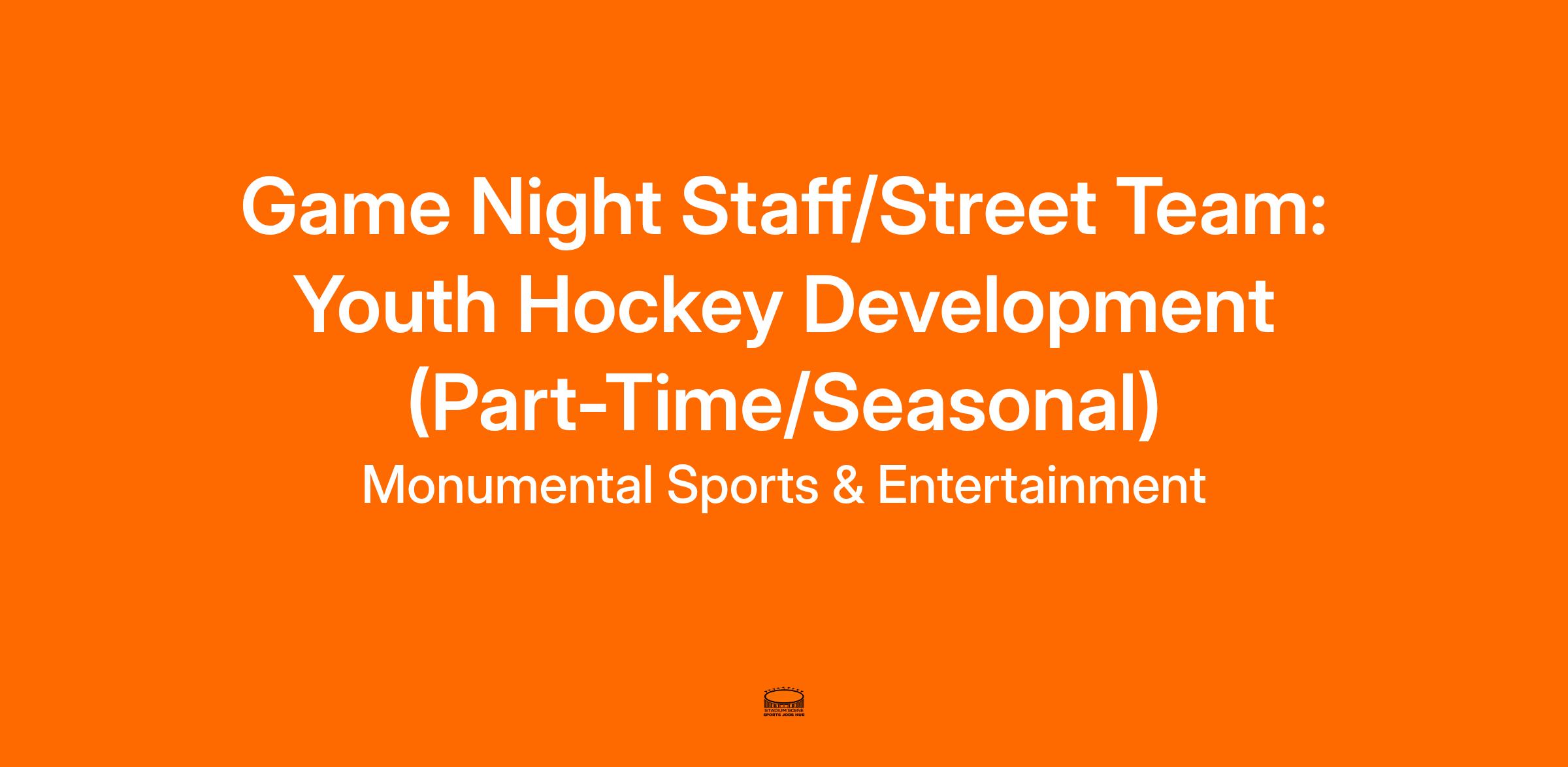 Position Overview: The part-time Game Night Staff/Street Team position will support the Washington Capitals Youth Hockey Development Department. We are looking for someone who is motivated to go above and beyond as a brand ambassador at Capitals events.