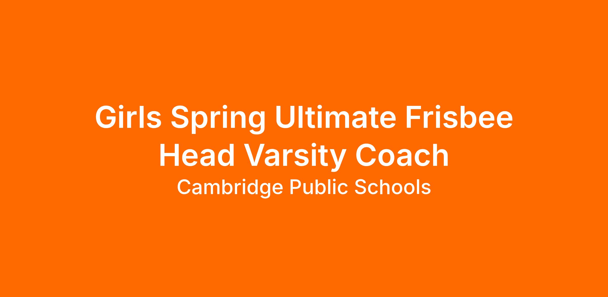Girls Spring Ultimate Frisbee Head Varsity Coach