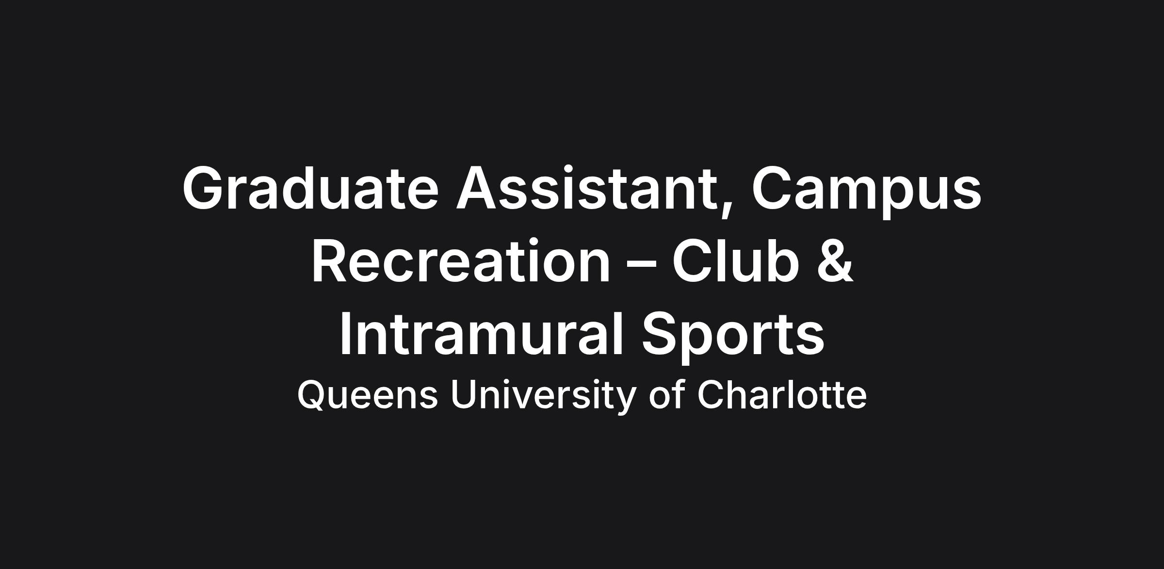 SUMMARY: The Queens University of Charlotte Campus Recreation Graduate Assistant’s overall mission is to enrich the co-curricular experience of students at Queens University of Charlotte. This role establishes and maintains an active, highly visible, and deeply engaged presence to sustain and grow strong collaborative relationships with students, university faculty and staff. Primary responsibilities include student staff supervision, scheduling and training, managing an intramural sports program, and growing wellness programing for the campus community. This part-time, 20 hours a week Graduate Assistant position reports to the Assistant Athletic Director Sport Administration/Director of Campus Recreation.