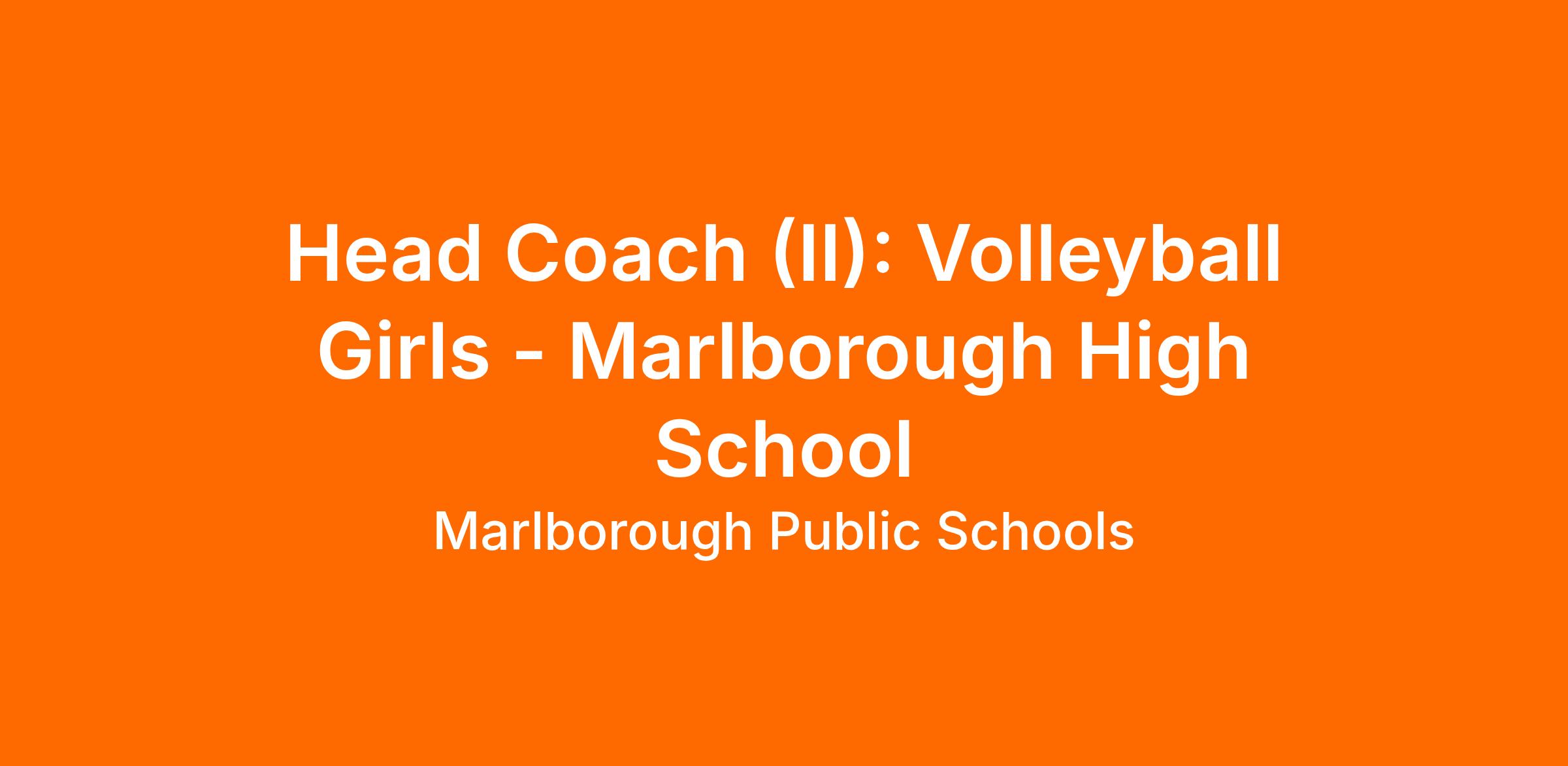 Head Coach (II): Volleyball (G) - Marlborough High School