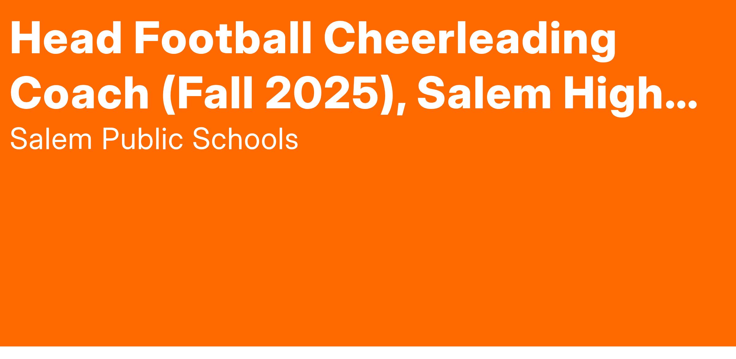 Head Football Cheerleading Coach (Fall 2025), Salem High School, Salem, MA