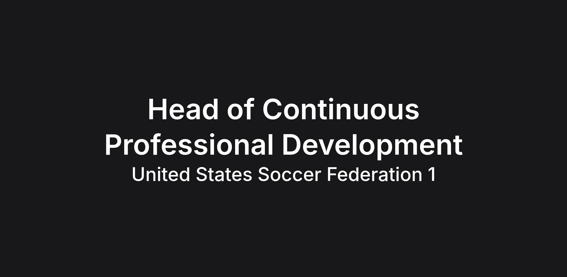 The Head of Continuous Professional Development (CPD) leads the design and development of a continuous professional development ecosystem for coaches and technical leaders including (but not limited to) US Way player-centered approach, leadership development, and broader professional development learning across the soccer ecosystem.