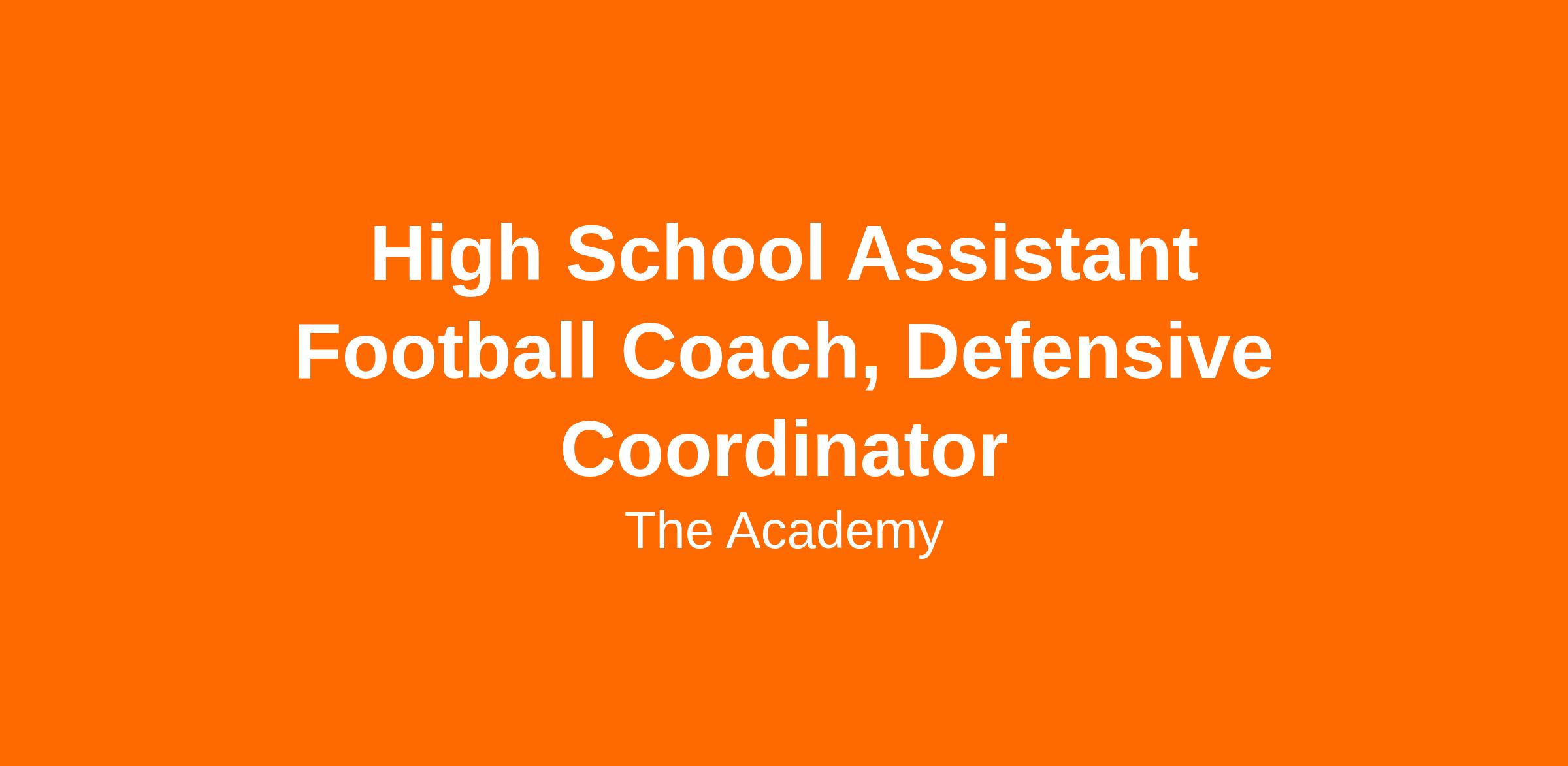 The Academy is currently hiring an Assistant Coach, Defense Coordinator for High School Football. We are a 3A school in a 2A football league.