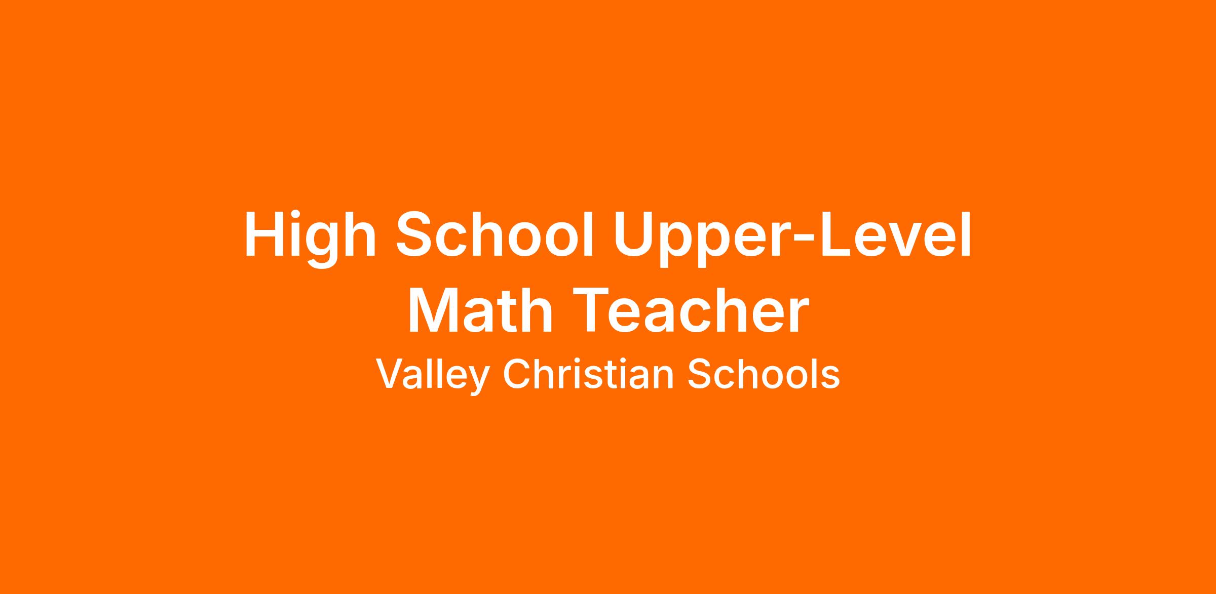 The High School Calculus teacher is one who displays a deep knowledge of Scripture and Calculus and teaches it from a Biblical perspective. This includes an ability to demonstrate a passion for ministering to students. This position will be responsible for teaching 2 Calculus AB & 1 Calculus BC classes. The teacher must be a professing and maturing Christian enthusiastically supporting Valley Christian's Statement of Faith and mission statements.