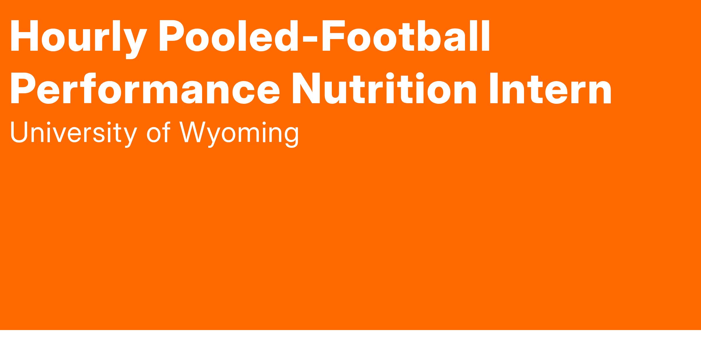 Assist the Director of Performance Dietetics – Football with tasks related to providing nutrition education and performance nutrition to the football student athletes at the University of Wyoming. This position is a travel position, and the successful candidate must be willing and able to perform duties on Fridays and Saturdays during the season, including at away games. Additionally, the preferred candidate will be available in Laramie during the summer to help with summer workouts and especially Fall camp. August can be a very demanding month during camp and preparation for the season.