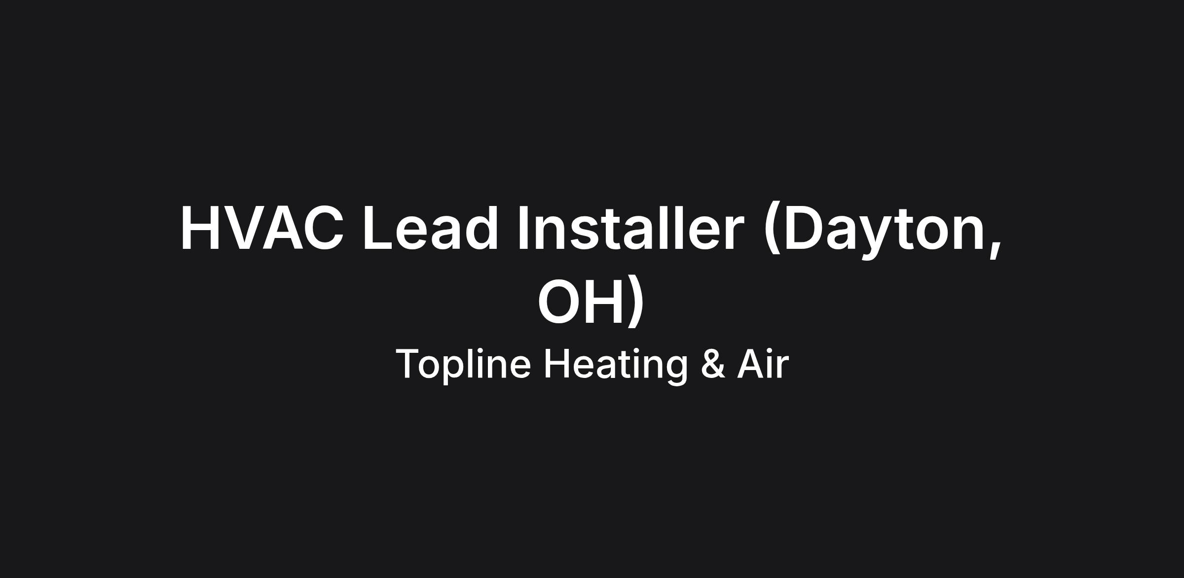 HVAC Lead Installer (Dayton, OH)