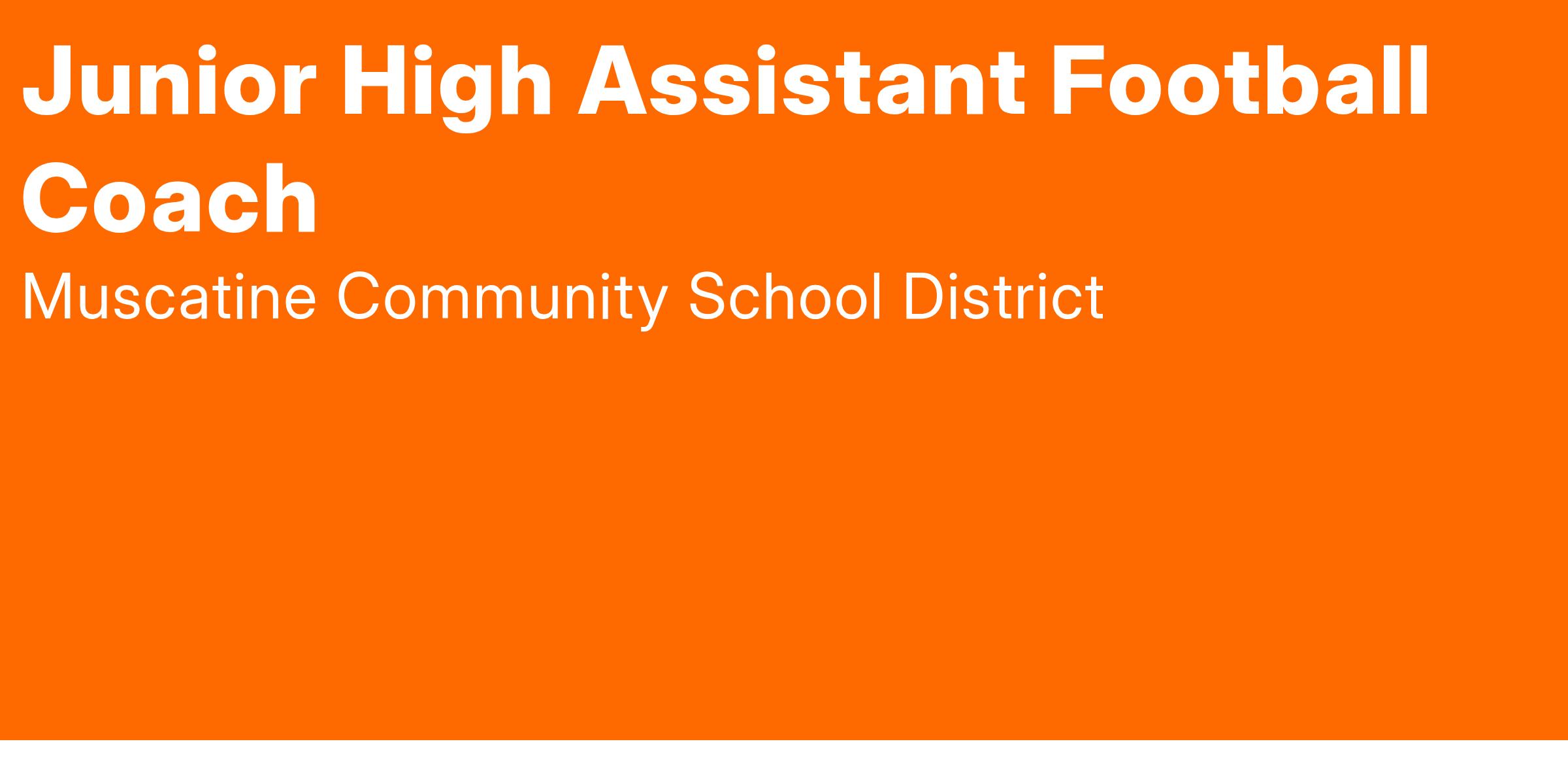 Muscatine Schools is hiring an Assistant Football Coach for the Susan Clark Junior High's Football program. The objective of an Assistant Football Coach is to support the junior high's mission and the Activities/Athletics Department's mission in the development and implementation of an exemplary Football program that will effectively provide the best possible educational and athletic experience for each student.