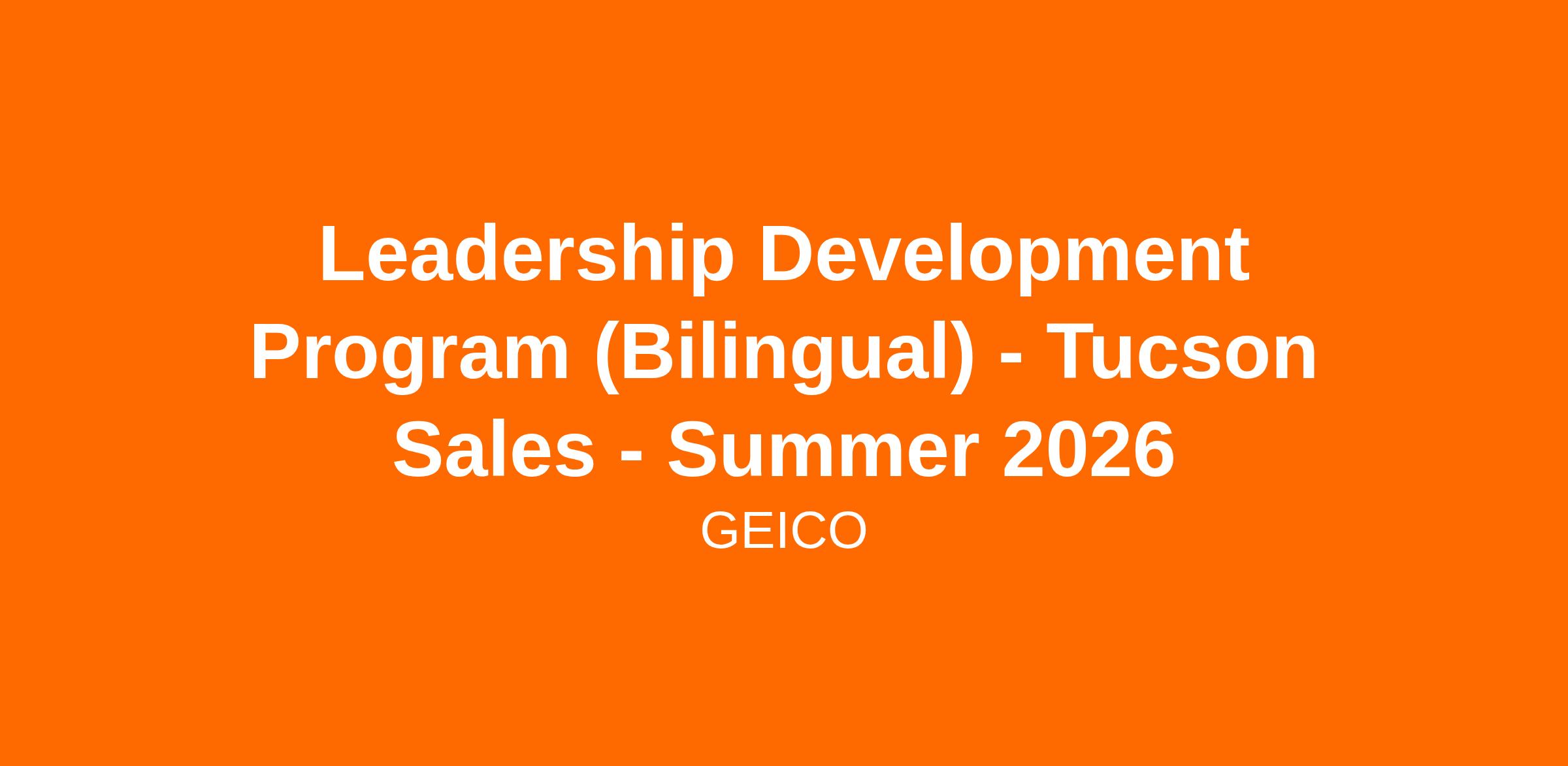We are looking for bright, driven, self-directed future leaders to join our LDP in our Tucson location on our Bilingual Sales teams. This program combines industry-leading training, hands-on experience, and personalized mentorship to prepare you for a future in management. As an LDP Associate, you’ll learn to motivate, inspire, and develop a high-performing team while gaining invaluable insights into GEICO’s operations and culture.