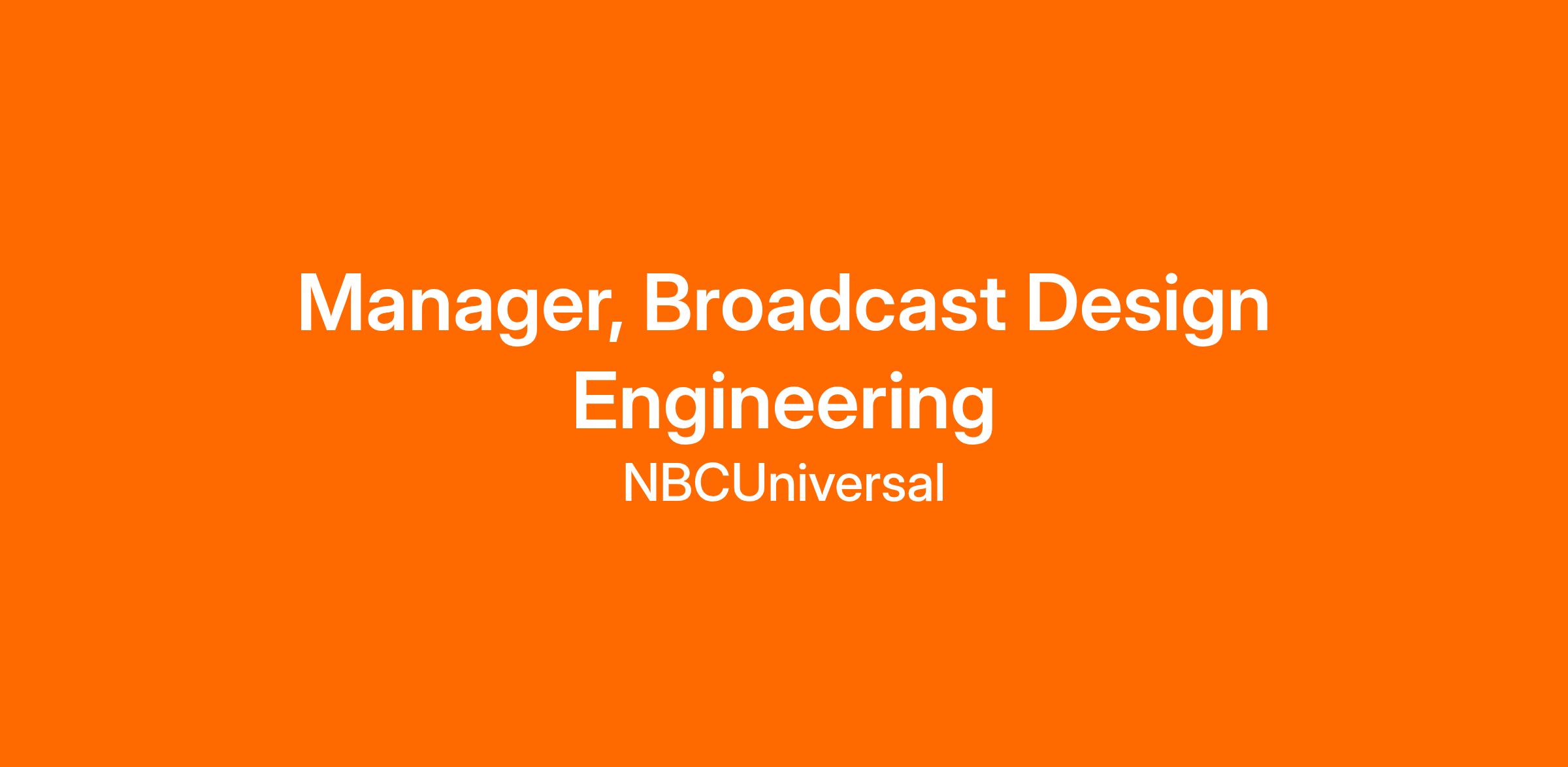 NBC Sports is seeking a Manager of Broadcast Design Engineering to support the planning, implementation, and sustainment of technical systems used in live sports production, studio production, post-production, and other core broadcast environments. This role will manage day-to-day engineering design activities across studio, REMI, and field environments, translating production needs into technical solutions and ensuring projects are executed on time, within budget, and to NBC Sports’ quality standards. The ideal candidate is a hands-on technical engineer with a strong understanding of modern broadcast infrastructure, IP-based media systems, and control workflows who thrives in a fast-paced live sports environment.