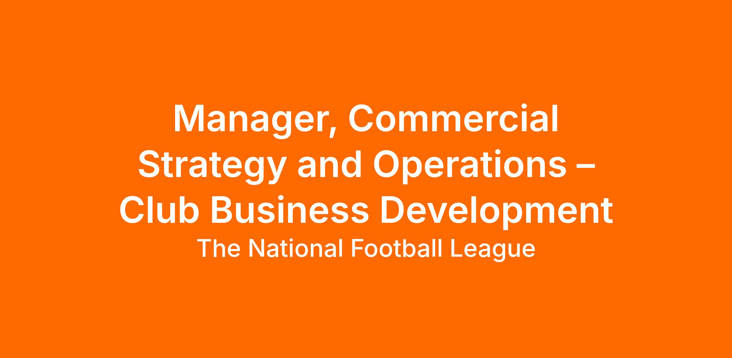 The Manager, Commercial Strategy and Operations, will drive key priorities at both the League and Club level. The role will sit at the intersection of multiple business verticals (ticketing, marketing, fan experience, new ventures & innovation, and more) to support all 32 Clubs, while also identifying and capitalizing on new areas of opportunity across the League. The position requires someone who is a passionate, results-driven problem solver that uses data, creativity, and collaboration to drive transformational results. The Manager will report to the Senior Director of Commercial Strategy and Operations and requires someone who is a highly driven entrepreneur, a strategic thinker and comfortable with ambiguity.