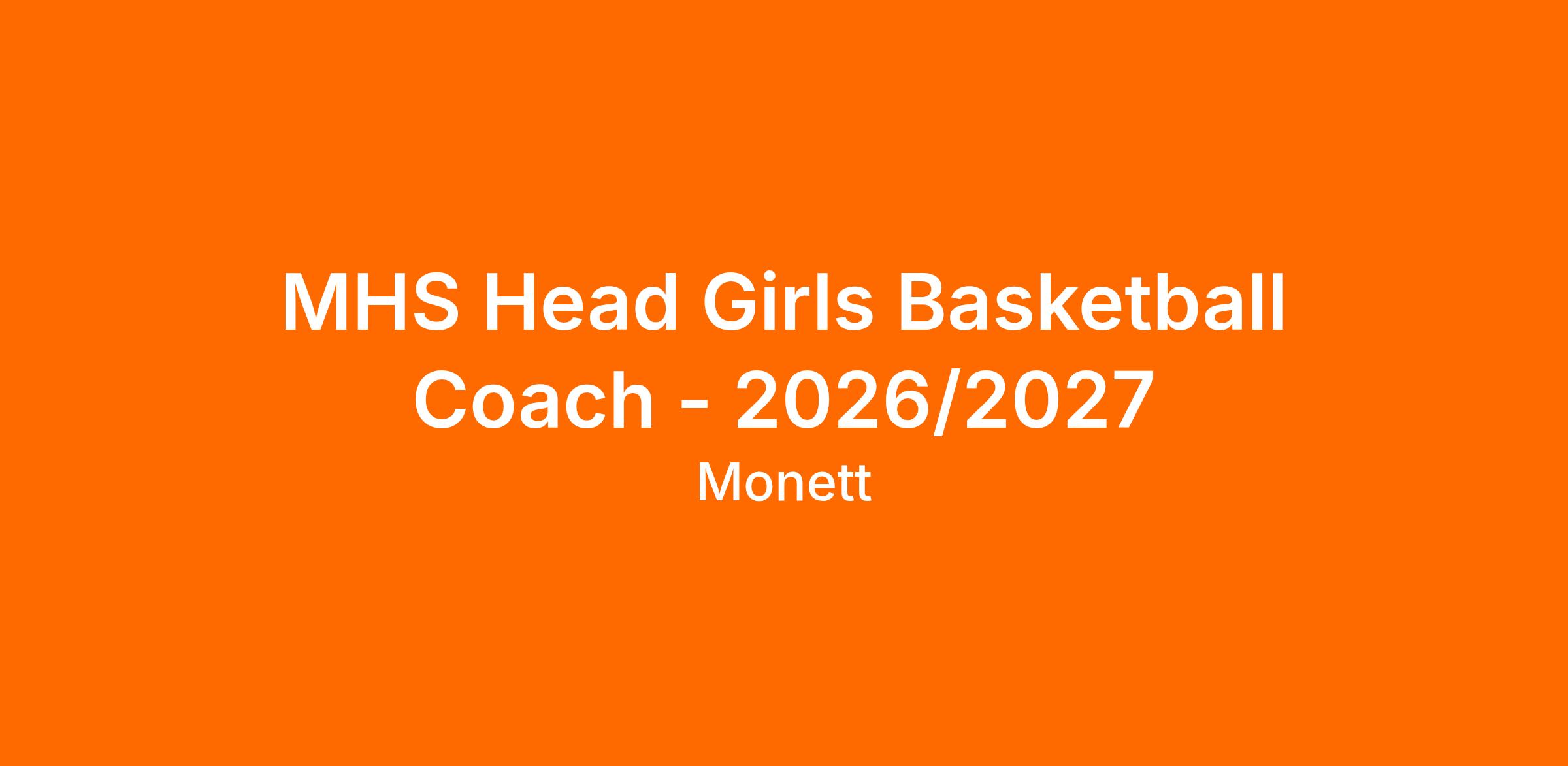 Monett High School is seeking a motivated, enthusiastic, and dedicated individual to serve as Head Girls Basketball Coach for the 2026-2027 school year. The successful candidate will lead all aspects of the program while working to grow and develop it from youth levels through the high school team. Responsibilities include fostering a positive team culture, promoting skill development and academic success, and building strong relationships within the school and community. Previous coaching experience is preferred. Multiple teaching opportunities are available within the district. Please contact Athletic Director Ty Goetz with any questions.