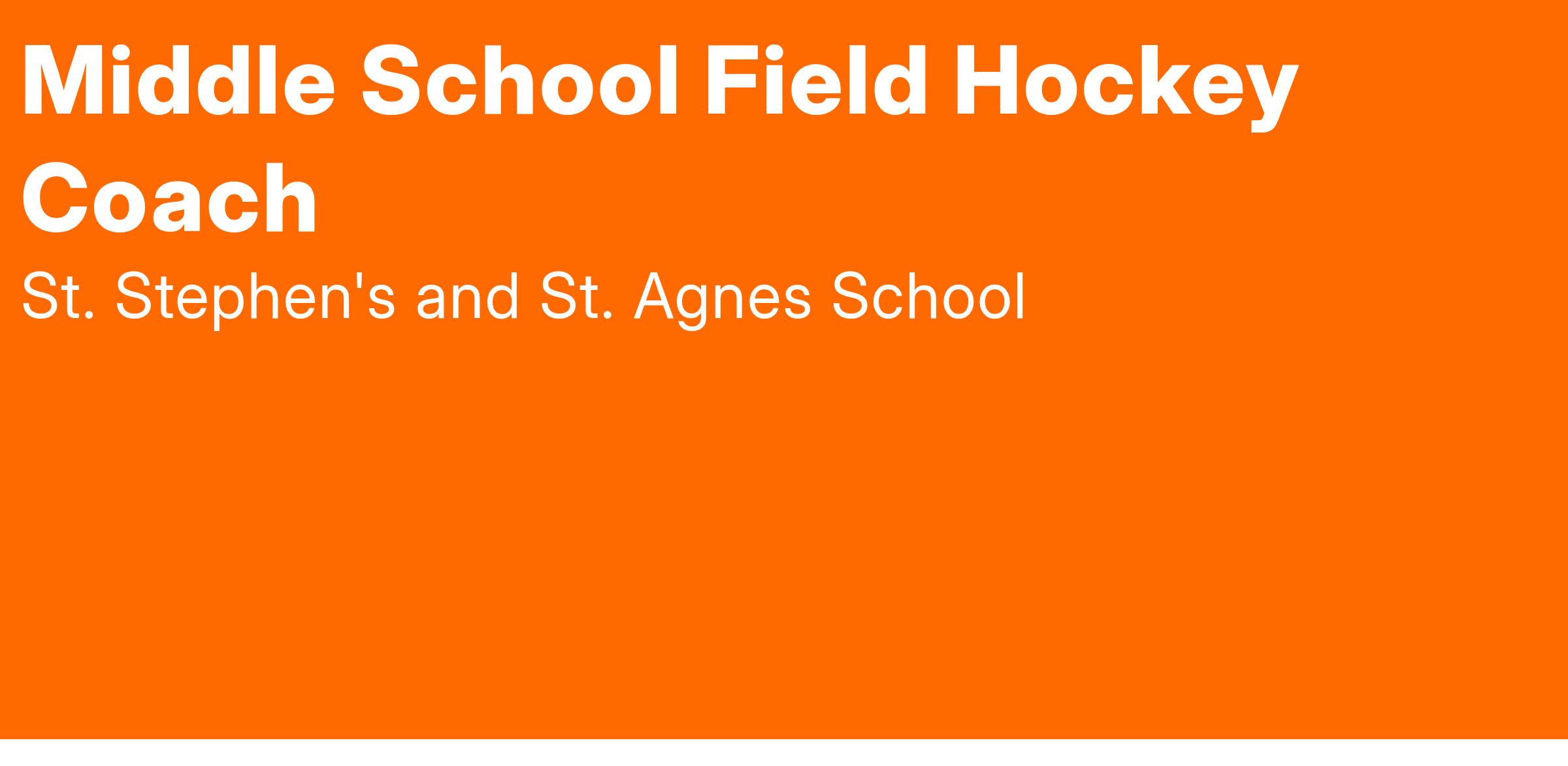 St. Stephen's and St. Agnes School is seeking a qualified middle school field hockey coach for the 2025 fall season. We are looking for a qualified coach that will emphasize the values of leadership, sportsmanship and goodness, values that lie at the core of the athletic program here at St. Stephen's and St. Agnes School. All coaching positions are part time.