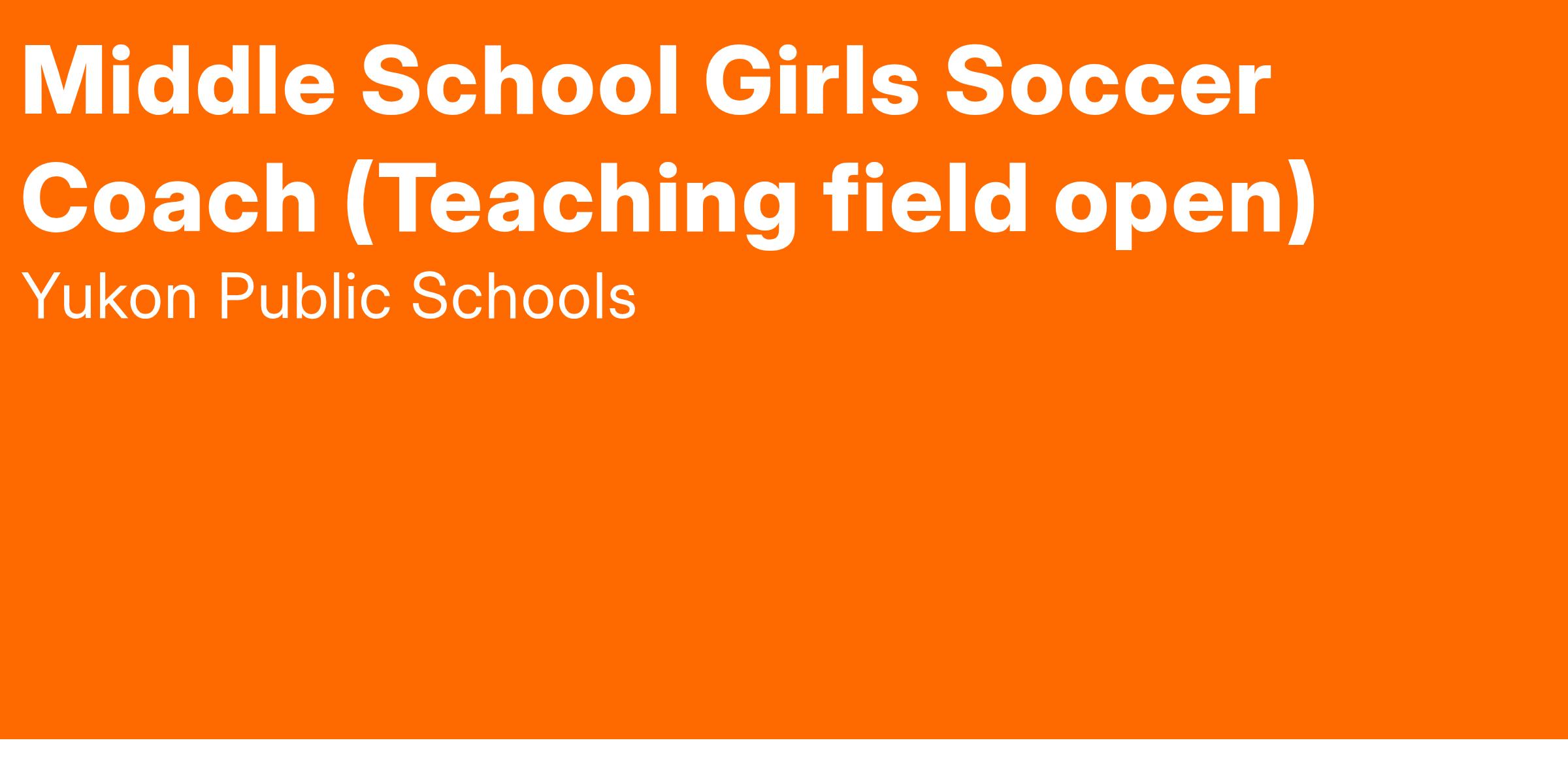 Yukon High School is accepting applications for a MIDDLE SCHOOL GIRLS SOCCER CLUB COACH.