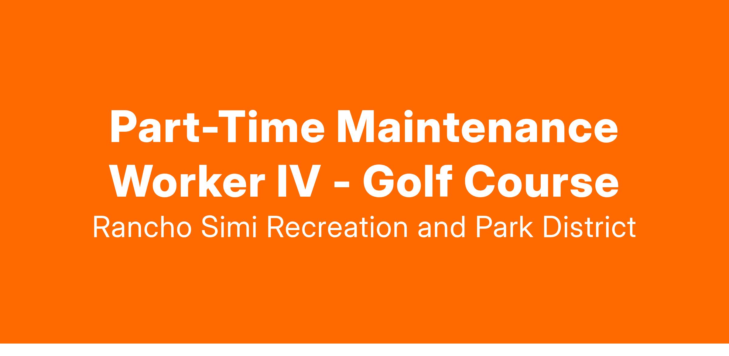 Part-Time Maintenance Worker IV - Golf Course