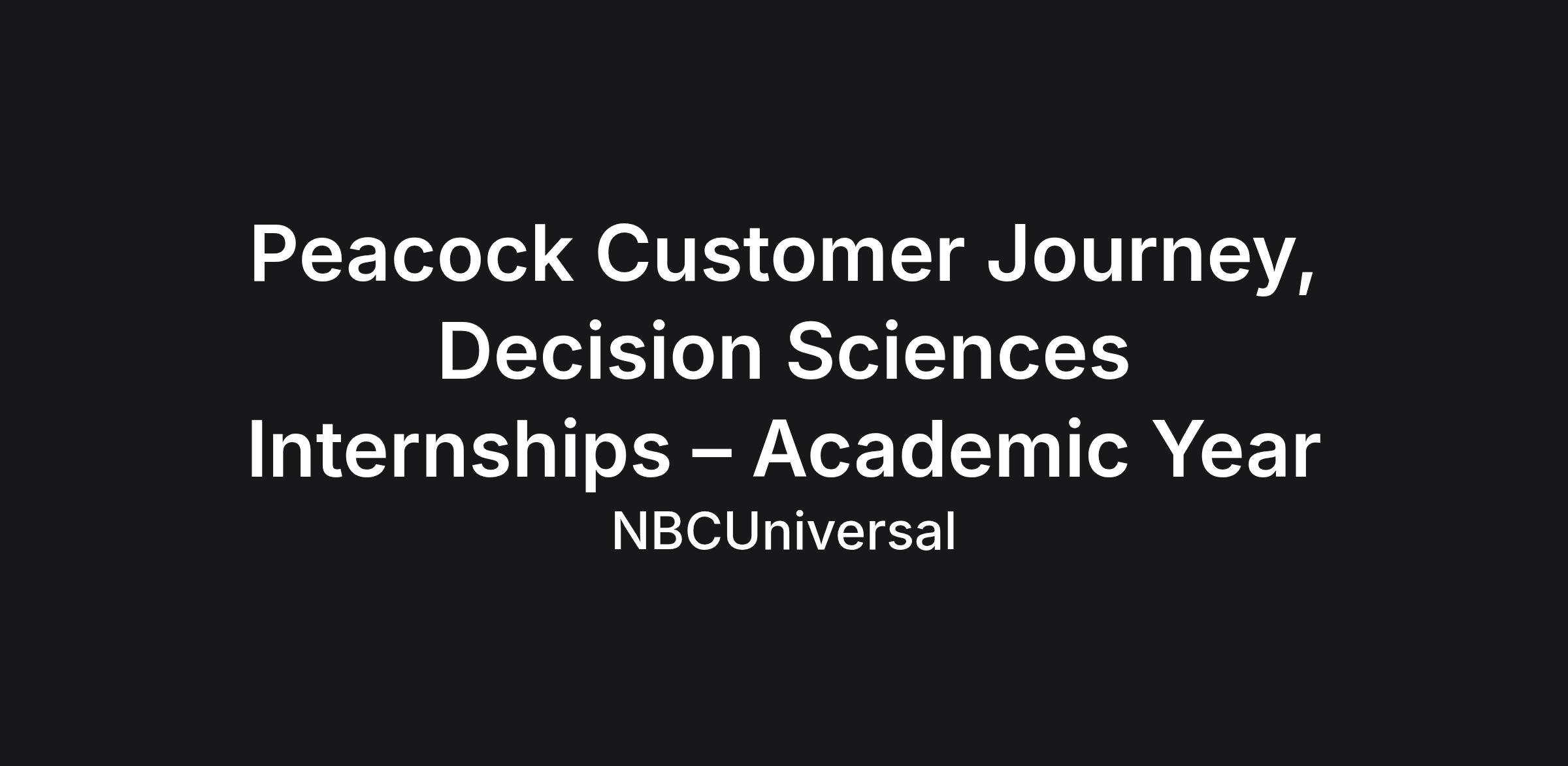 Decision Sciences, Peacock Customer Journey Science: At Peacock, the Data Science Internship embeds participants directly within active teams working at the intersection of content, technology, and culture, offering a hands-on experience that goes beyond a traditional internship. Interns contribute to real-world data science projects with defined responsibilities, goals, and timelines aligned to team objectives, gaining exposure to modern tools and the broader media landscape. In this role, interns build machine learning and statistical models to analyze customer journeys and predict lifetime value, transform and engineer high-quality data for modeling, and collaborate on developing real-time and batch data pipelines to operationalize solutions. They also leverage both structured and unstructured data sources, contribute to improving codebases and machine learning infrastructure, and actively participate in all aspects of team collaboration.