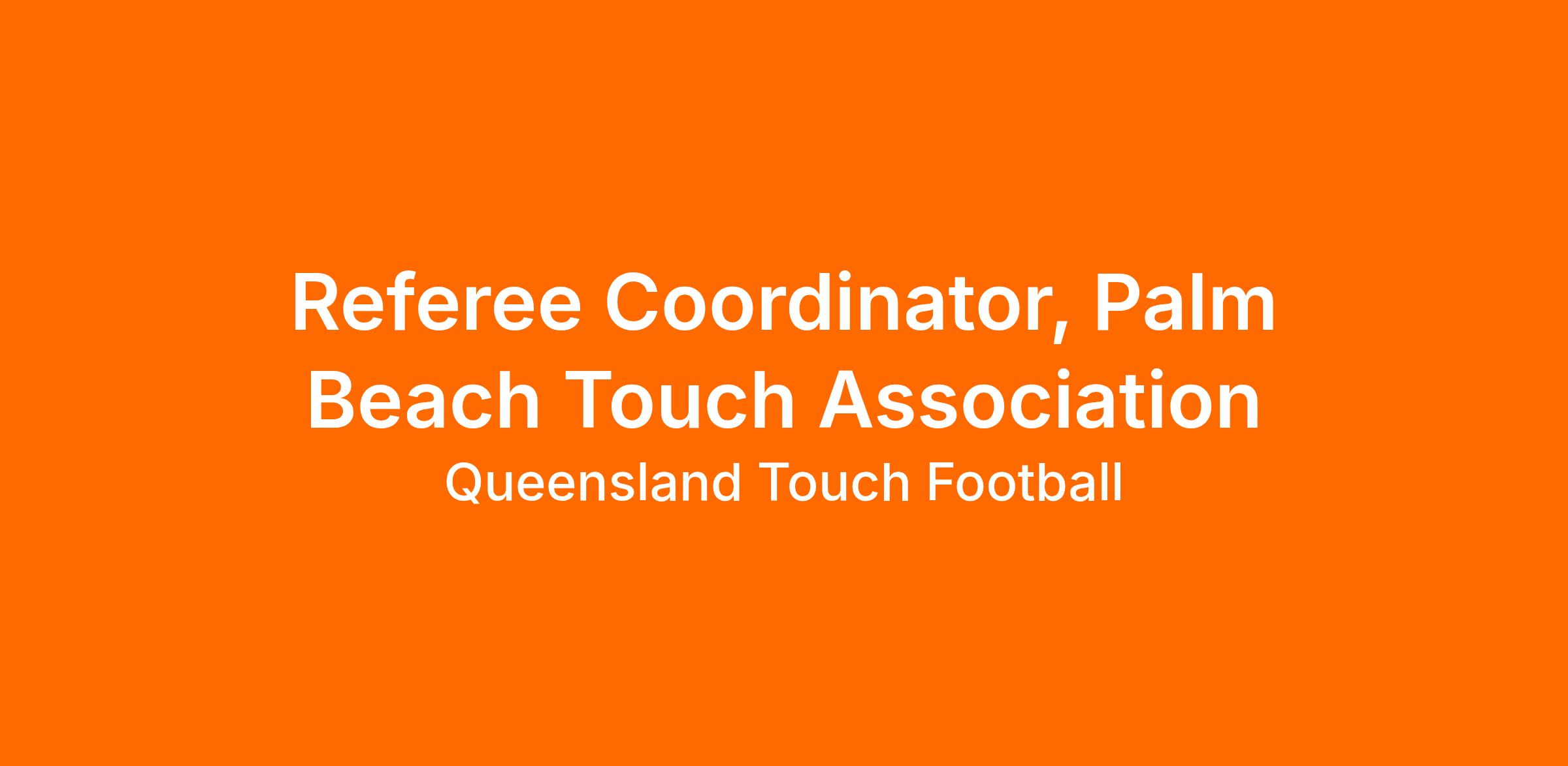 The Referee Coordinator will lead the delivery in allocations, administration, communication, recruitment, training and retention of referees focusing on improving the quantity and quality of entry level referees for all Palm Beach Touch Association competitions and events.