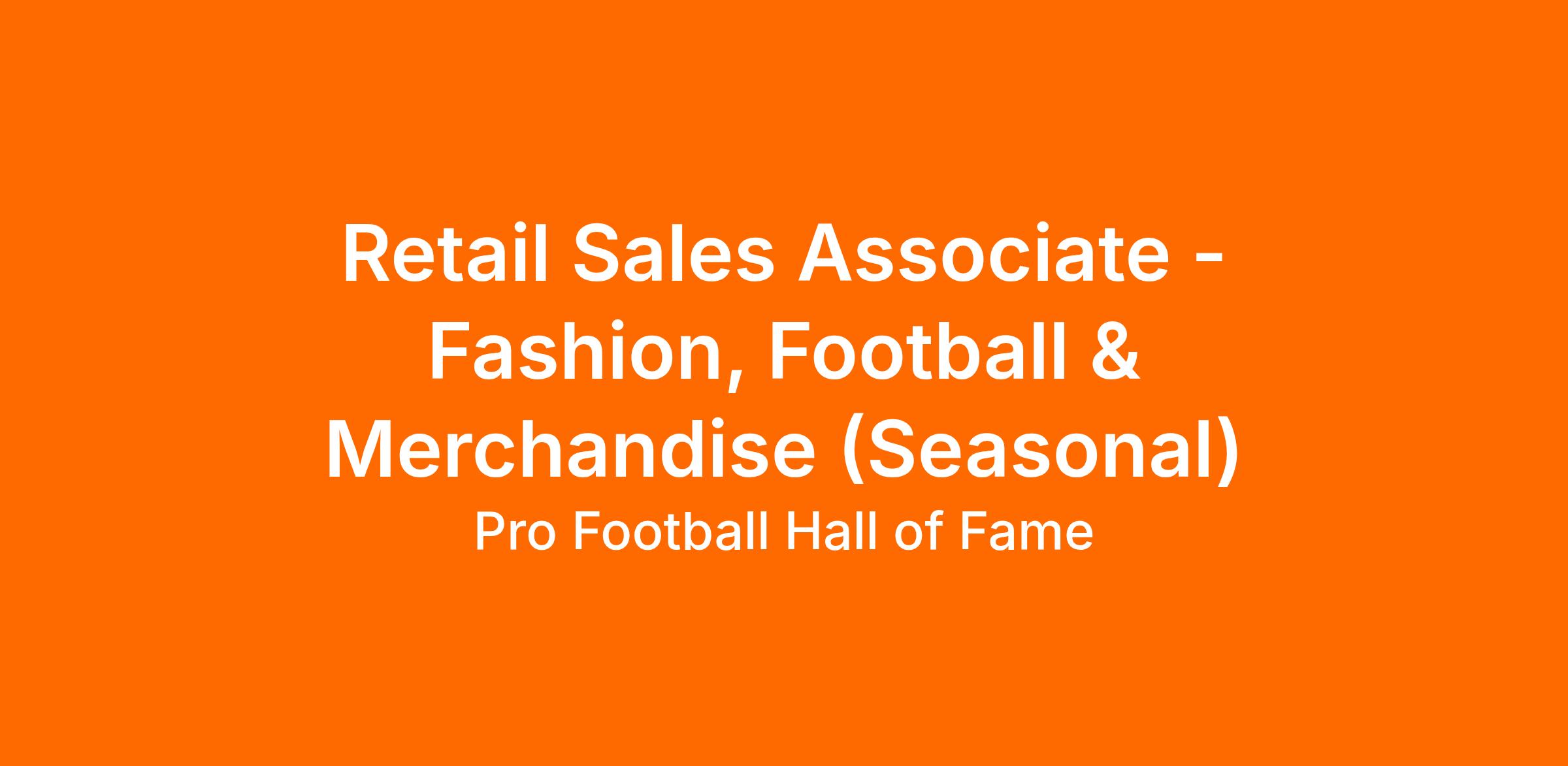 As a Retail Sales Associate, you will engage with our guests at the Hall of Fame Store. The Hall of Fame Store is a one-stop shop for merchandise from all 32 NFL teams along with Hall of Fame exclusives. It is open daily during Museum hours.
