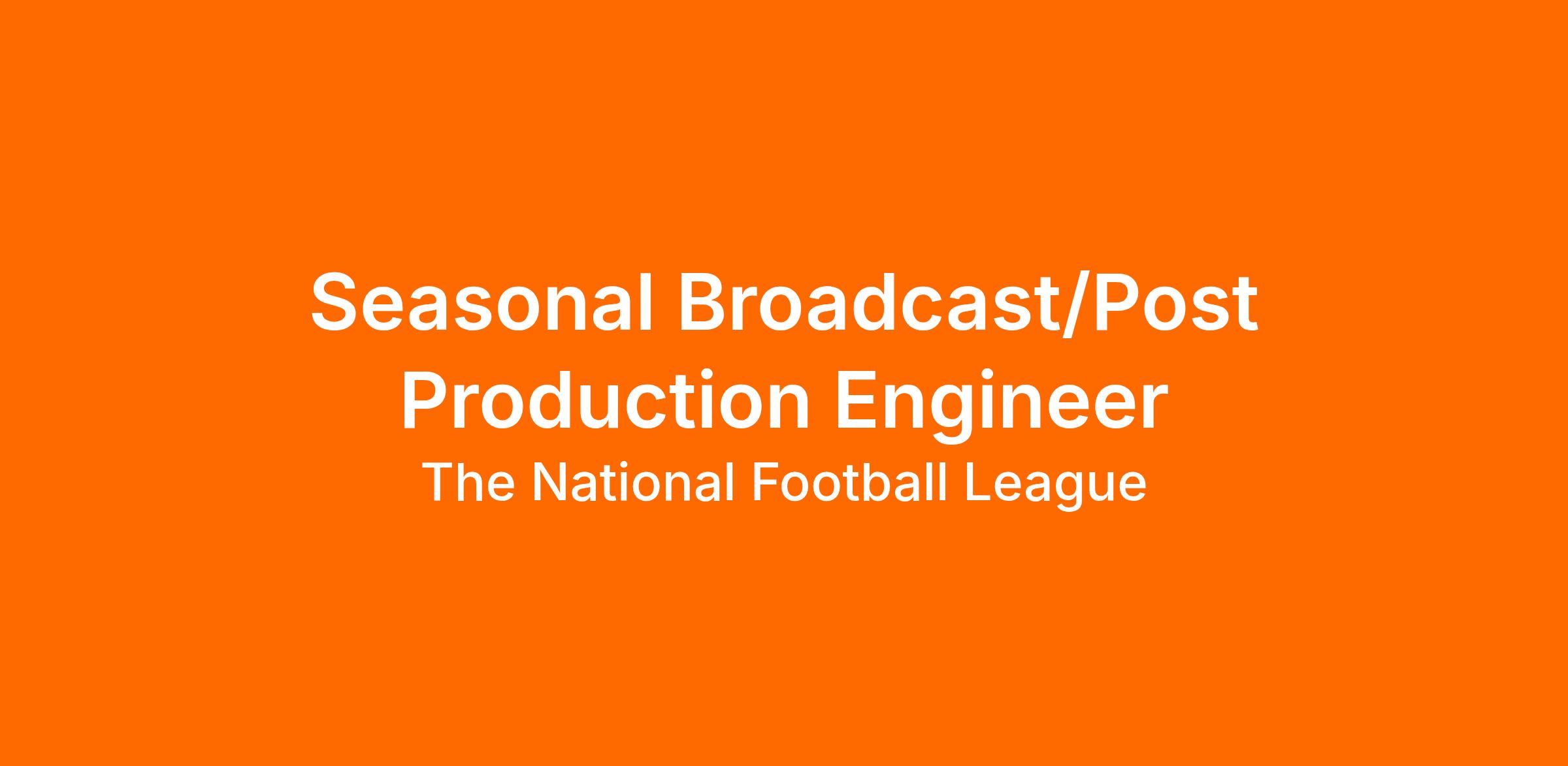 NFL Films is seeking a Seasonal Broadcast/Post-Production Engineer who is a highly motivated, skilled, and passionate individual to join our team. This position is responsible for designing, deploying, monitoring, maintaining, operating, and repairing production equipment systems as a senior member of the broadcast/post Engineering team.
