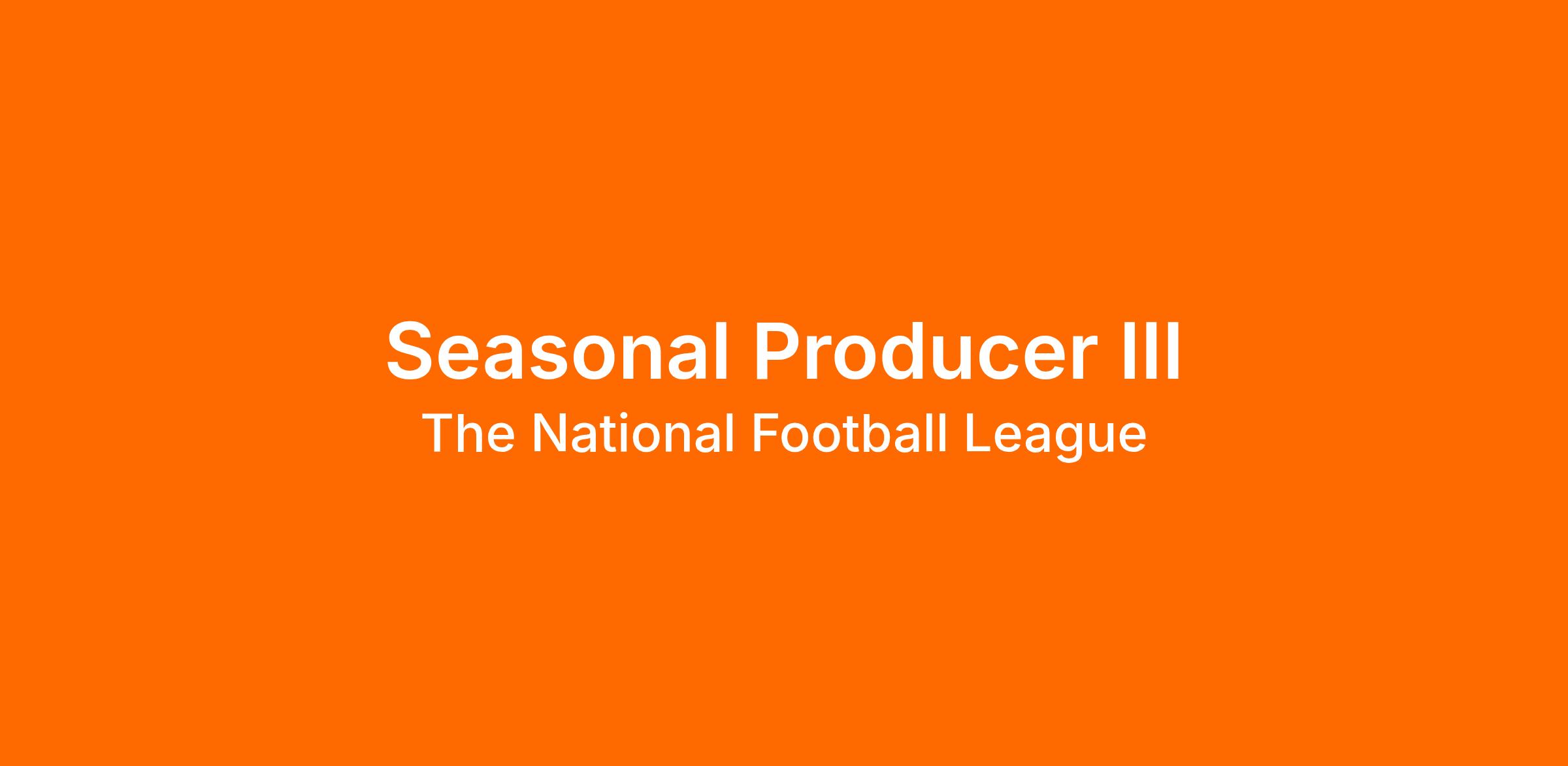 - The Seasonal Producer III position is in the Producers Department at NFL Films and is equivalent to a Production Assistant-level role. This position assists and supports Producers in the production of television shows, documentaries, features, and other content created for different platforms such as broadcast, cable, streaming, and social. It is a supportive & creative role and is primarily office-based.