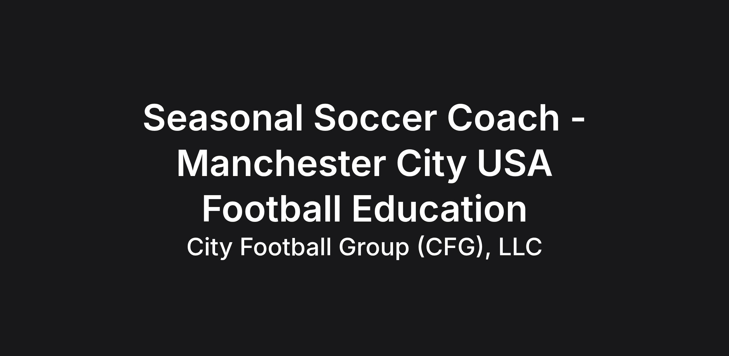 Please note that this role will require you to be exclusive to coaching sessions/delivering projects for Manchester City Football Club across cities within the US on a seasonal basis