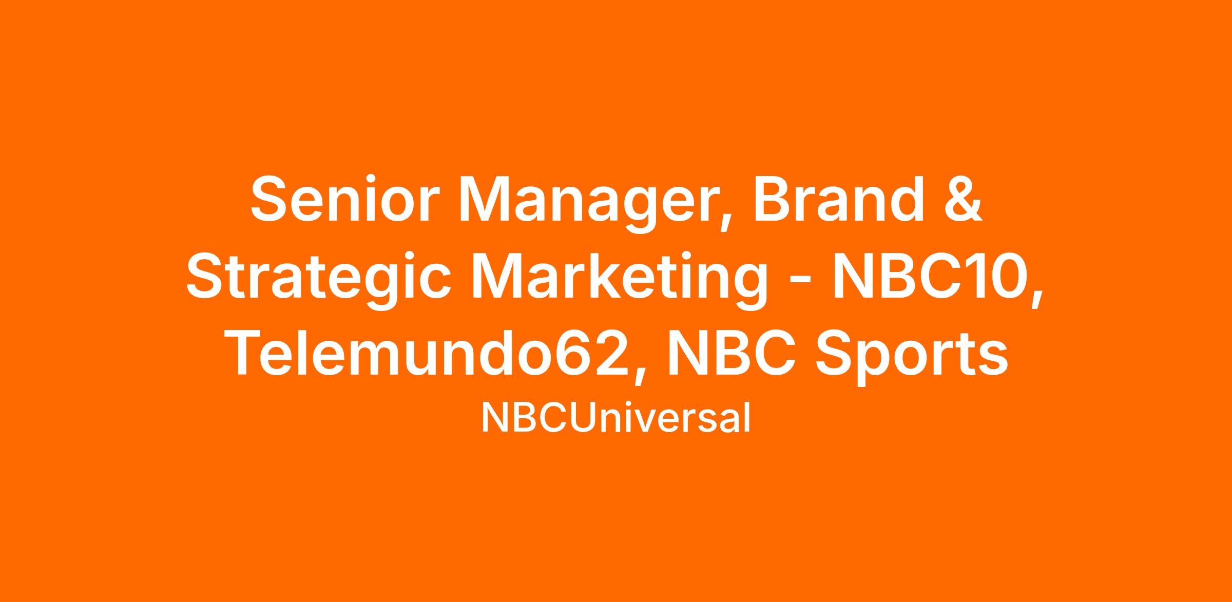 NBC Philadelphia is seeking an experienced, highly driven Senior Manager, Brand & Strategic Marketing to help lead and execute the day-to-day marketing strategy across NBC10, Telemundo62, and NBC Sports Philadelphia. You will be in a key #2 leadership position within the marketing organization, responsible for turning strategy into action and ensuring creative excellence across all platforms.
