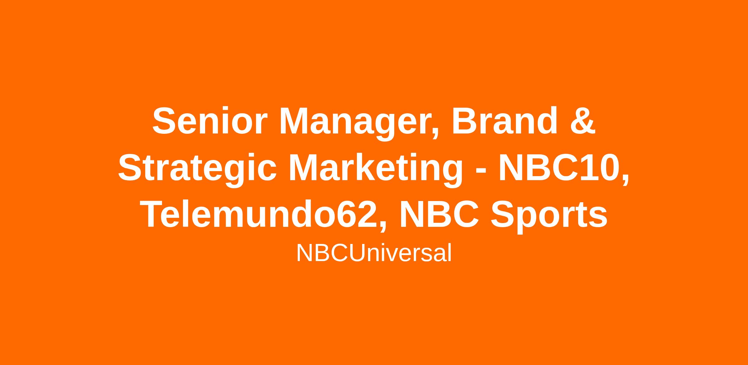 NBC Philadelphia is seeking an experienced, highly driven Senior Manager, Brand & Strategic Marketing to help lead and execute the day-to-day marketing strategy across NBC10, Telemundo62, and NBC Sports Philadelphia. You will be in a key #2 leadership position within the marketing organization, responsible for turning strategy into action and ensuring creative excellence across all platforms.