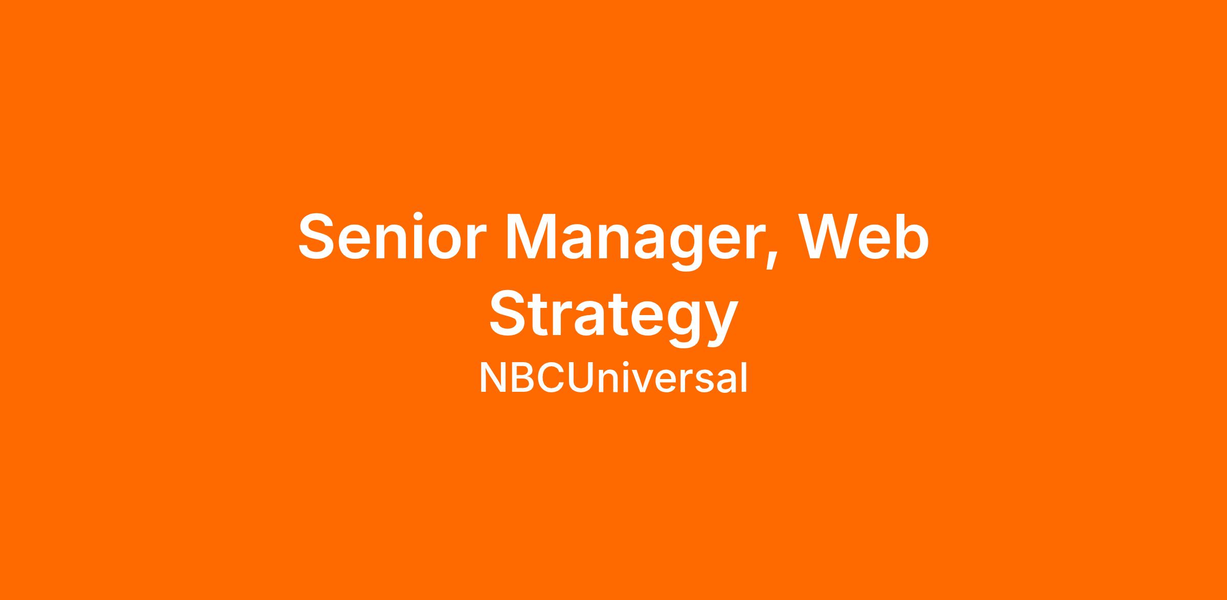 NBCUniversal is seeking a Senior Manager, Web Strategy to join the Growth Go-to-Market team within its direct-to-consumer digital video streaming business. You will report to the Director, Web Strategy, will lead experimentation strategy and own the logged-out PeacockTV.com experience (including homepage and landing pages) as a key acquisition surface, guiding a cross-functional roadmap and a team responsible for execution.