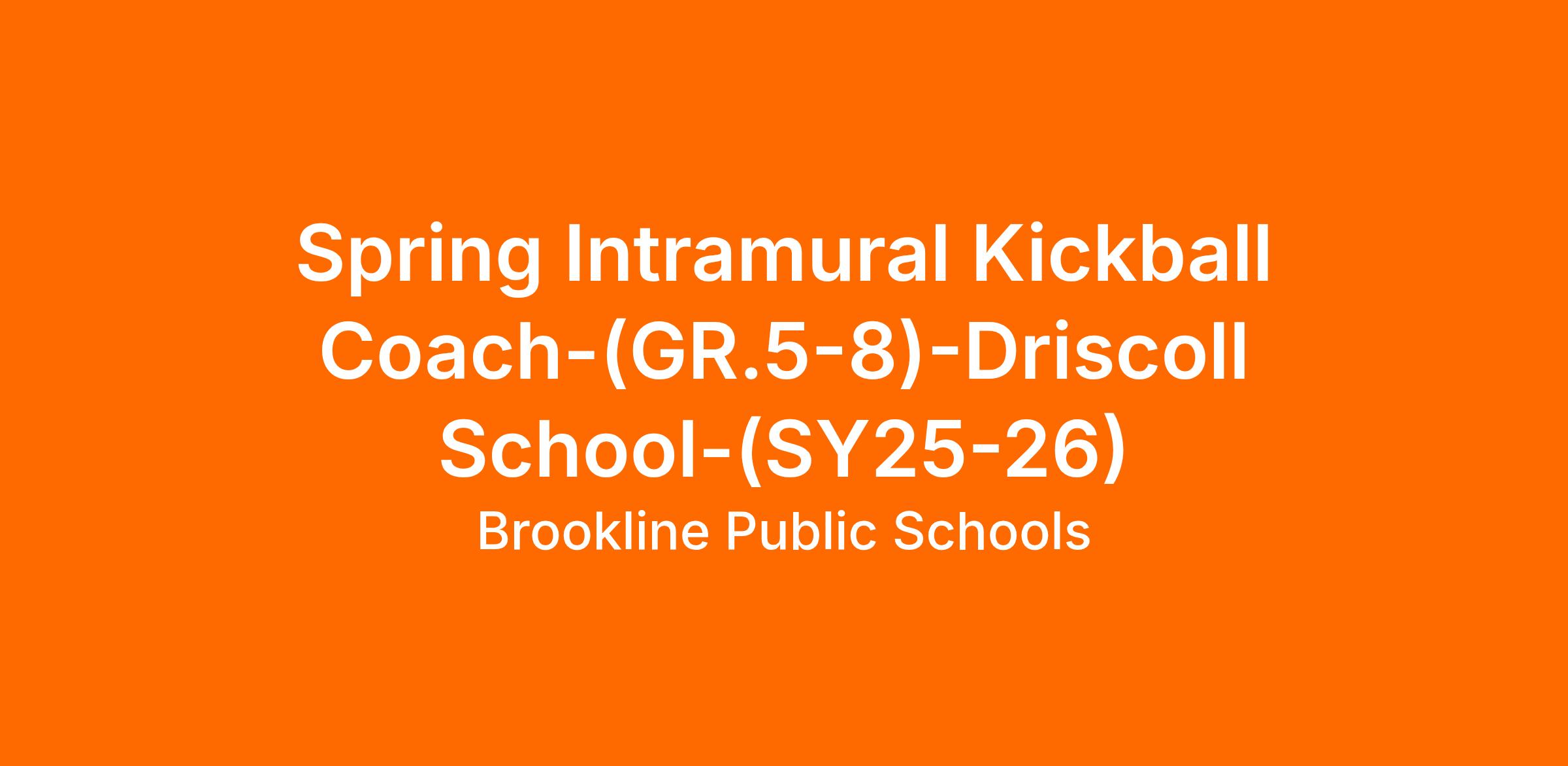 The Public Schools of Brookline is seeking a Kickball coach for the Spring Intramural Season. The Kickball coach is responsible for the following;