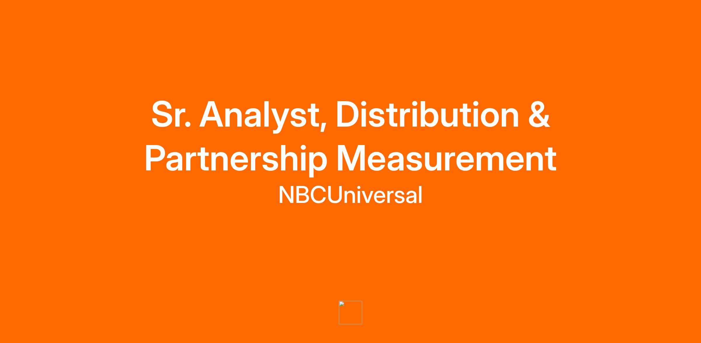 NBCUniversal’s Media Group is looking for a highly motivated Senior Analyst, Distribution & Partnerships Measurement to join the Decision Sciences team. This role supports performance measurement across NBCU’s portfolio of distribution partnerships—including across digital platforms, MVPDs, and enterprise/marketing partnerships—by ensuring data and reporting solutions are accurate, reliable and launch-ready.
