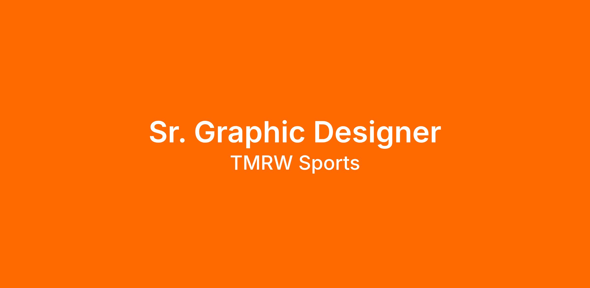 The Sr. Graphic Designer is highly creative, detail-oriented, self-motivated, and organized, playing an essential role in creating and maintaining TMRW Sports, and its related brands and standards. With a minimum of seven years of experience in graphic design, this person will deliver branding and design solutions for various clients with a focus on sports. He/she will produce traditional and digital promotion, social media assets, collateral materials, logo designs, internal and external communications, merchandise, brand management and more, all across the entire TMRW Sports portfolio.
